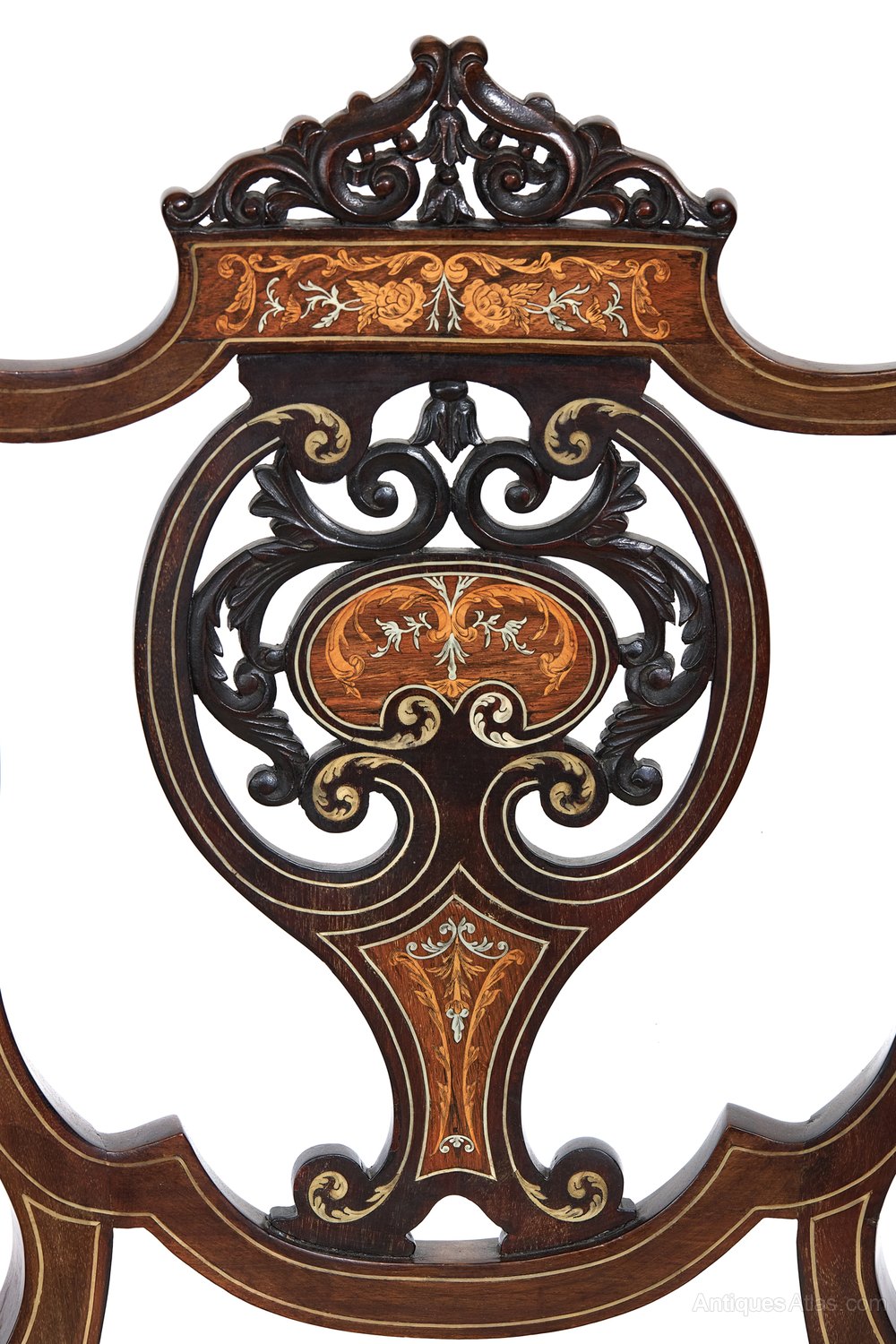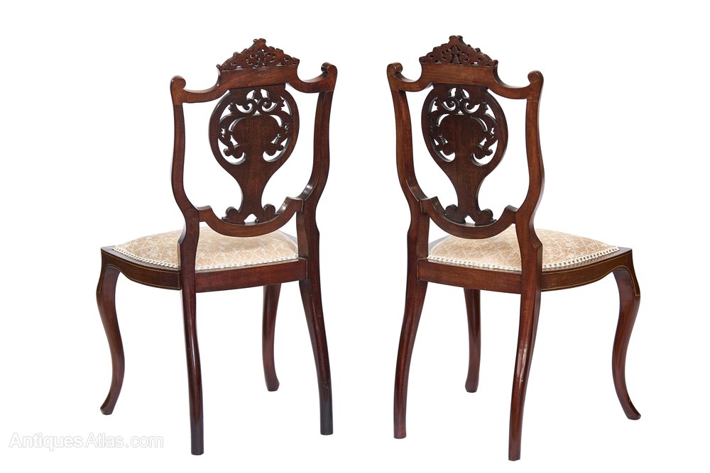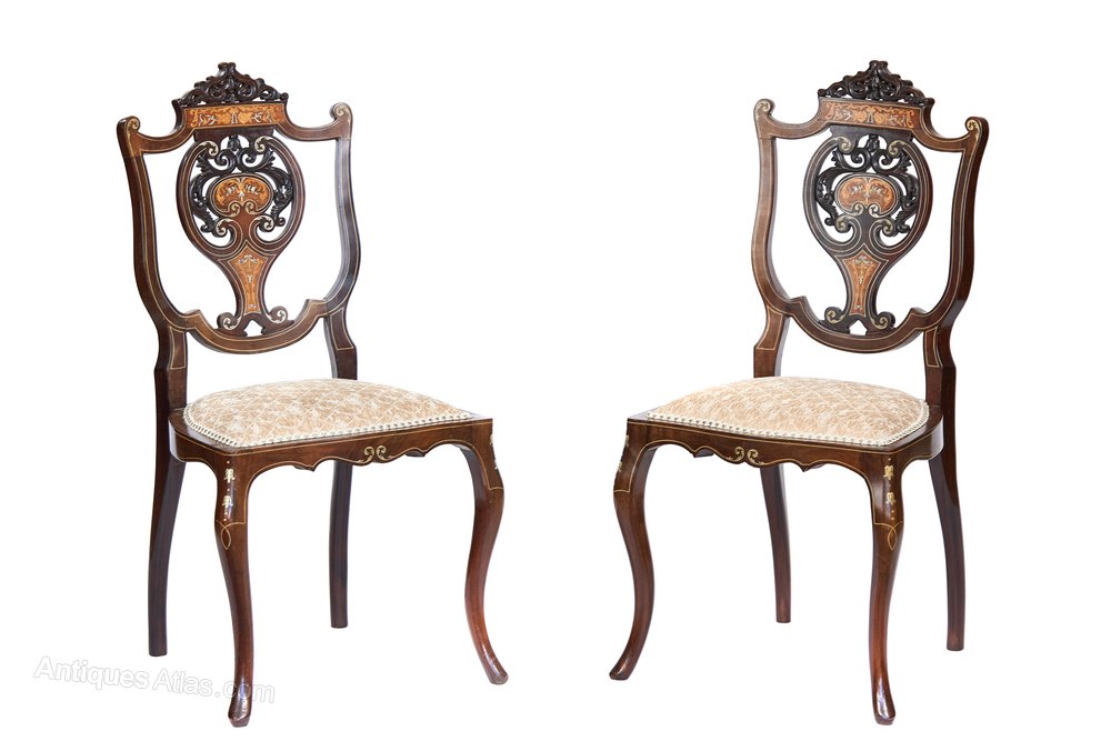 Fine Pair Edwardian Inlaid & carved Chairs [B]