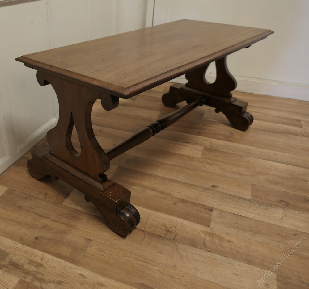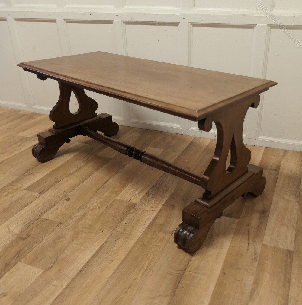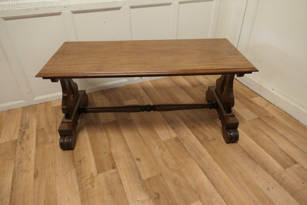 This is a very heavy quality piece it is made in solid walnut with Lyre Shaped Legs and a solid top with a moulded edge