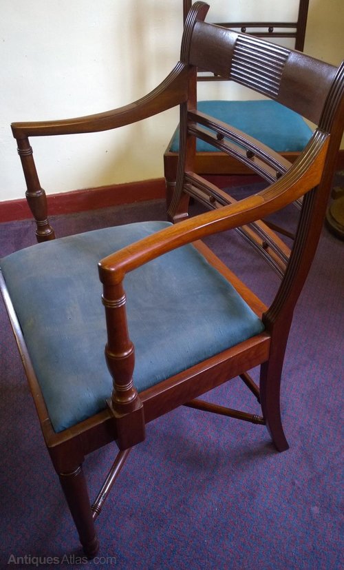 Fine Set Of 8 Regency Chairs With Carvers.