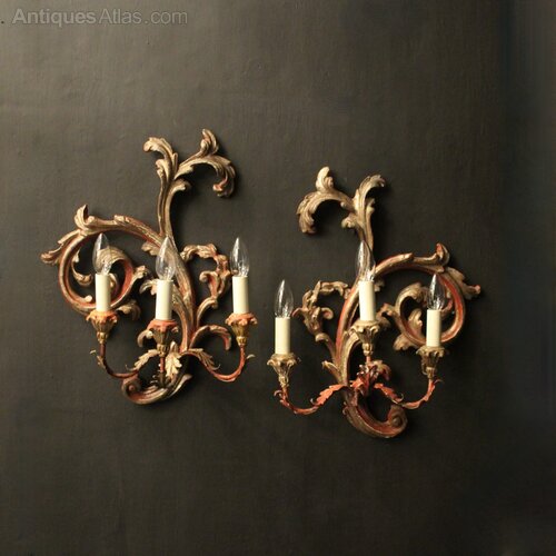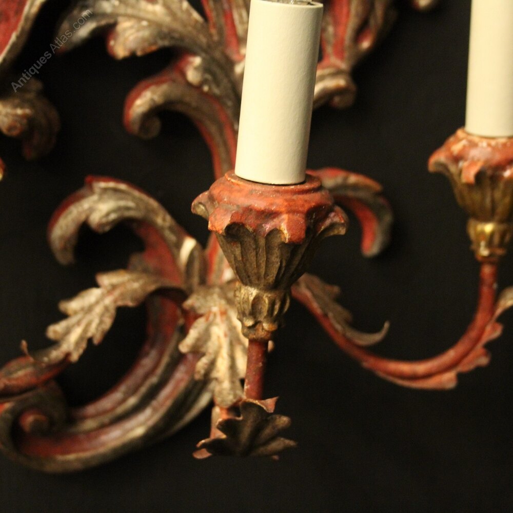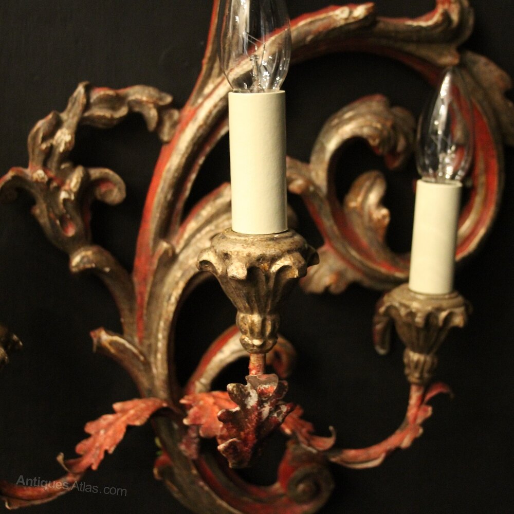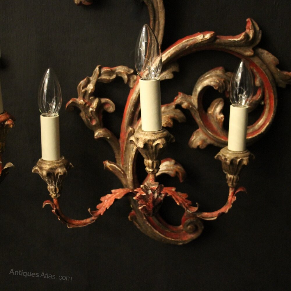 Florentine Pair Of Giltwood Antique Wall Lights