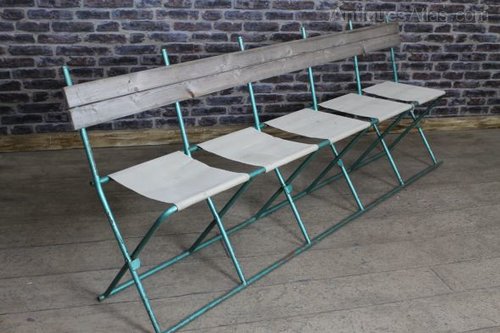 Available in a three or five seat variety, these benches would be great as additional seating for parties, or for use in bars and restaurants. They have a turquoise blue painted frame and feature canvas seats and a timber back.