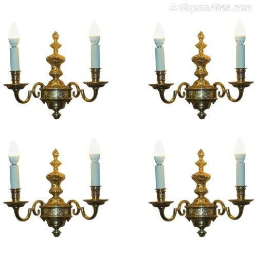 Set Of 4 French Gilded Twin Arm Antique Wall Light