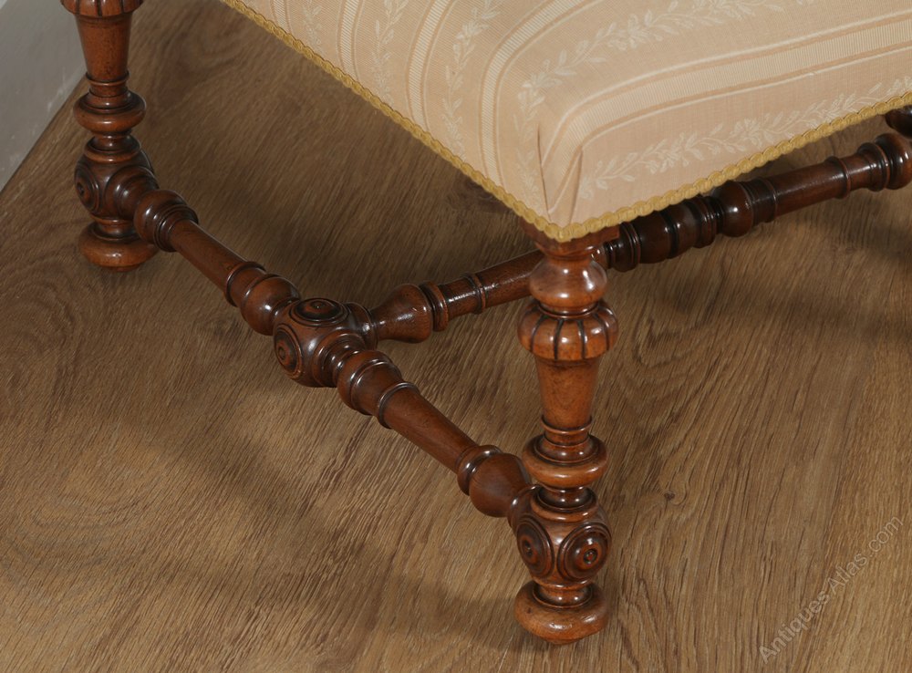 This is a top quality footstool, which is very functional as it consumes little space. It is rare to see stools of this quality, with the lovely turned legs and stretchers, which are constructed of solid walnut it makes this stool very desirable.