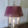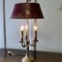 French Wine and Gold Toleware and Brass Triple Desk Lamp