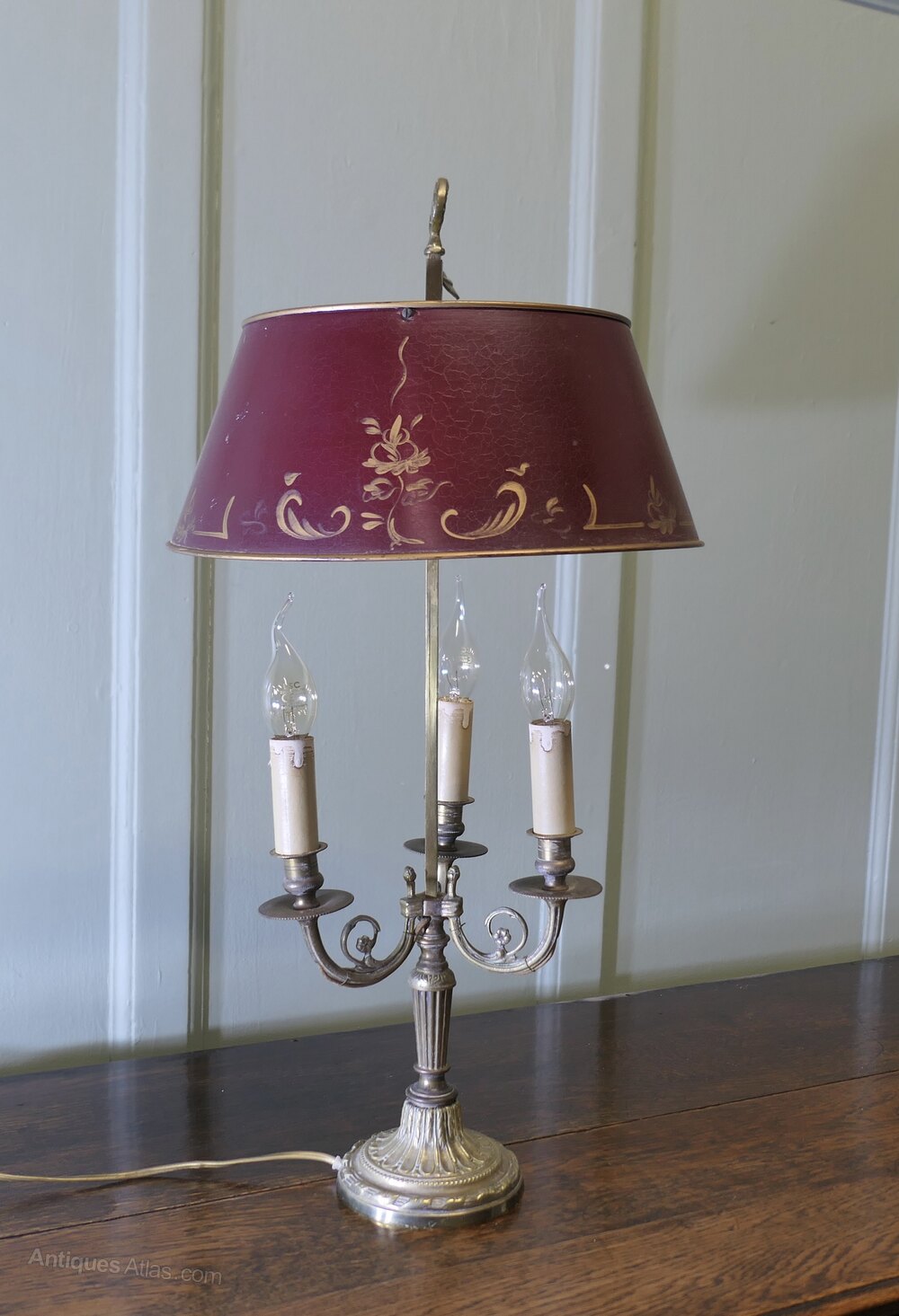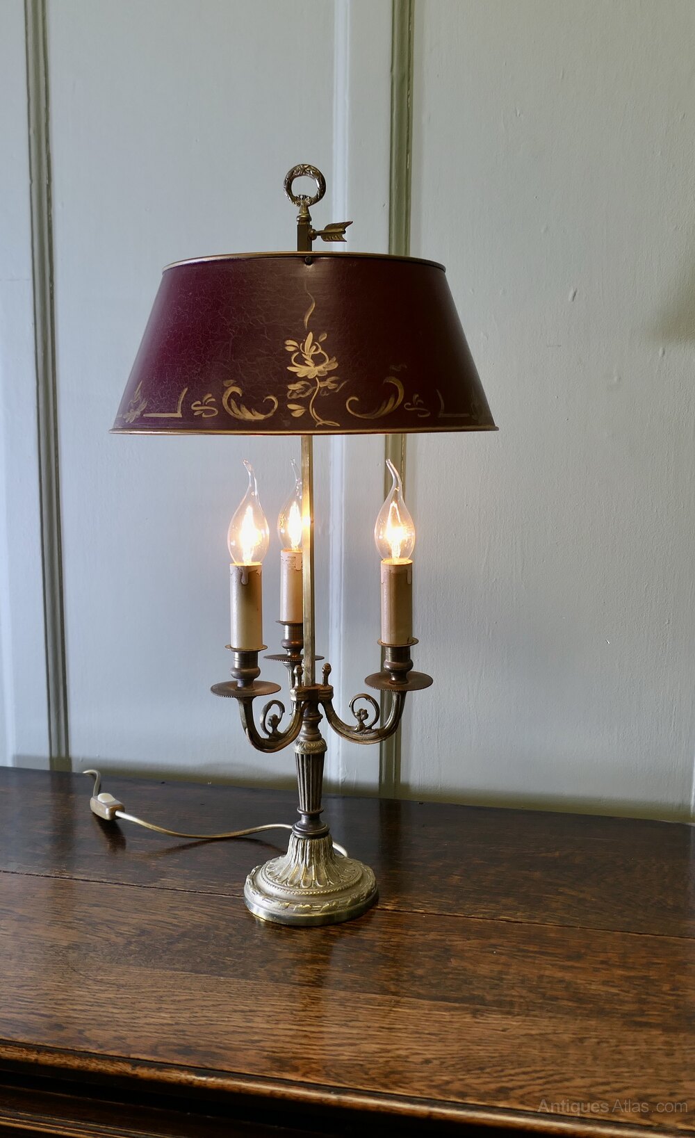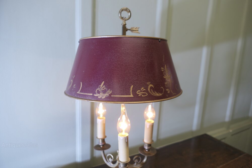 A lovely piece, a brass Triple Bouillotte lamp with its original adjustable toleware shade
