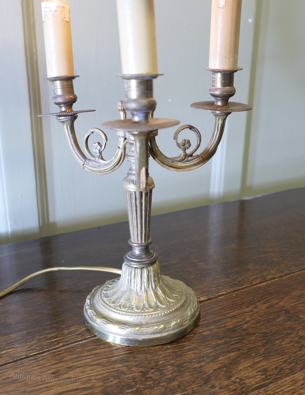 A Very traditional design with three candles and the arrow shaped grip to adjust the shade