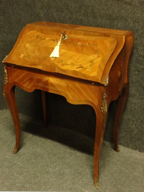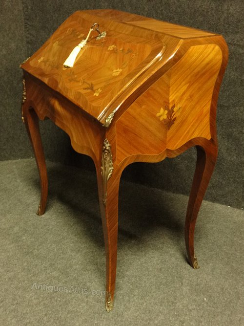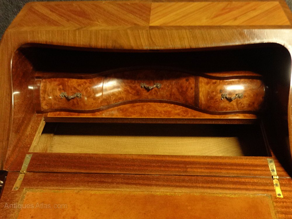 Antique Burr Walnut Inlaid Freestanding Davenport
