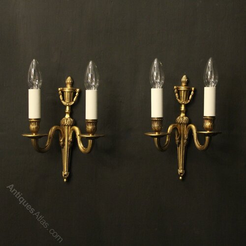 French Pair Of Brass Twin Arm Wall Lights