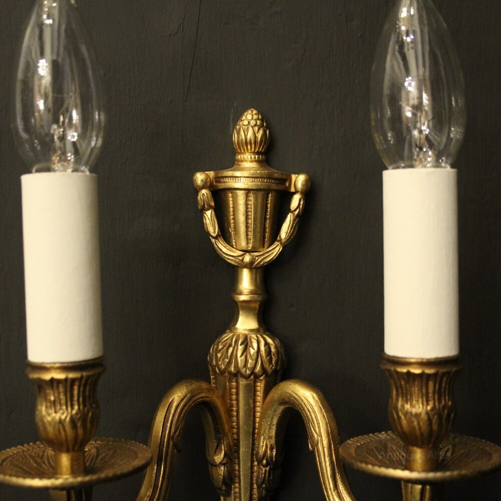 French Pair Of Gilded Bronze Antique Wall Lights