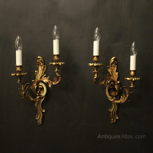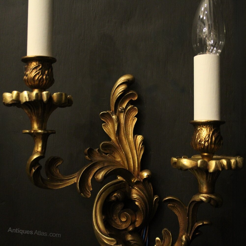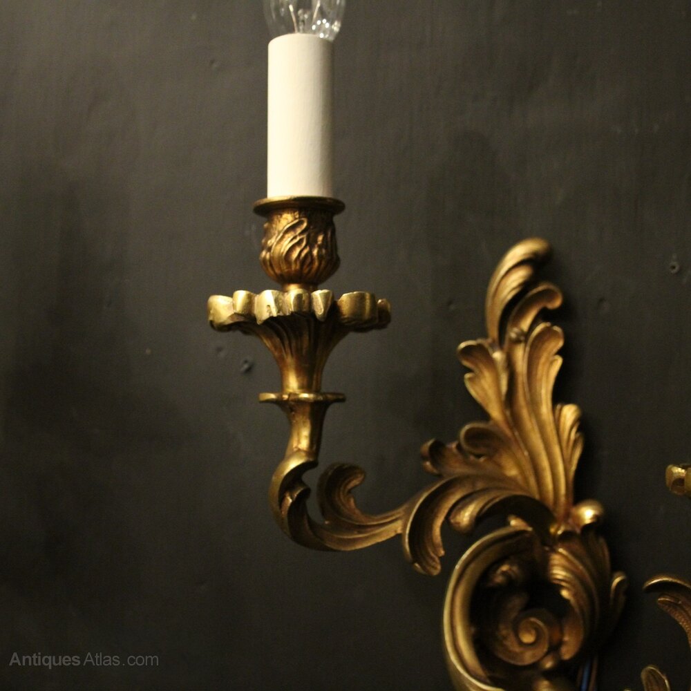 French Pair Of Gilded Bronze Antique Wall Lights