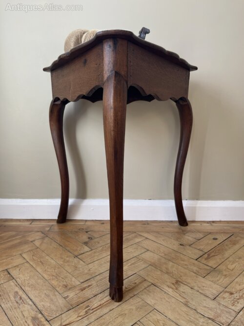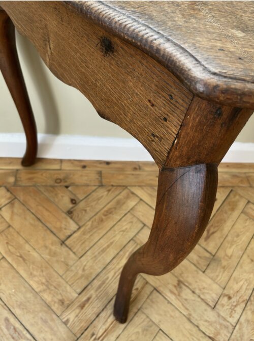 A fabulous rare triangular French oak antique lamp table. Lovely chunky features with cabriole legs. Beautiful statement table perfect for that large lamp. Historic woodworm and some small chips to the feet but generally this one’s pretty good with a medium rustic wood.