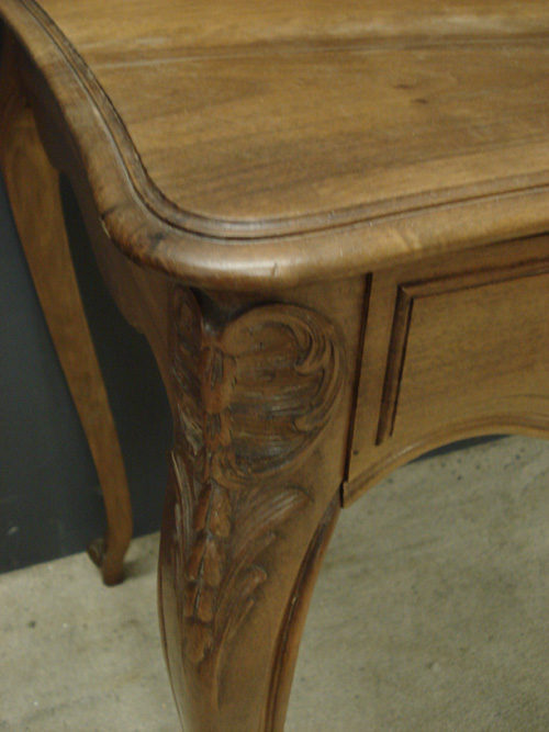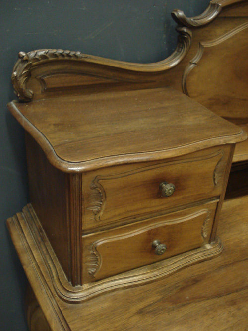 Ref 3614 - Old French Louis XV style walnut writing desk. Single drawer to desk, 4 drawers in upstand. Original lock but no key. Circa 1900.