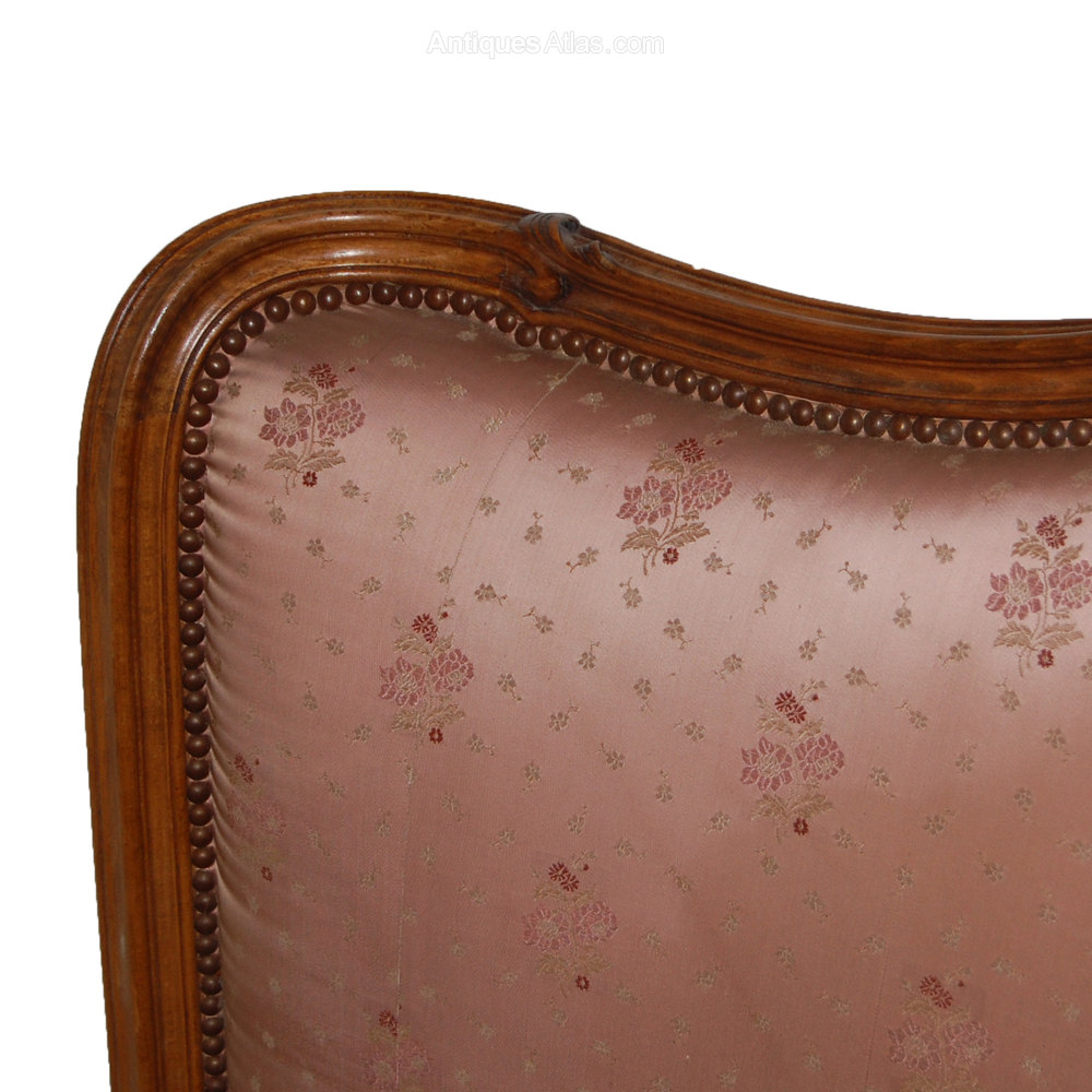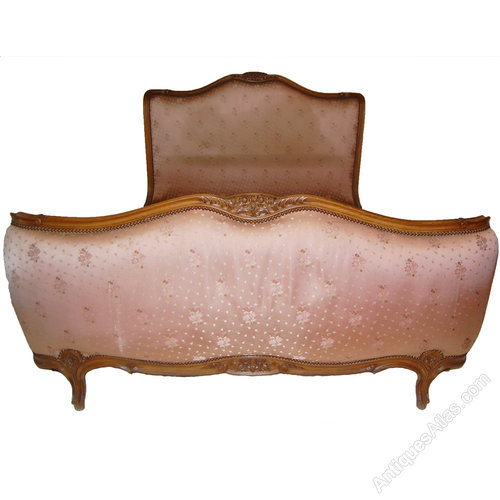 This bed is in really very good condition, beautifully carved frame, the liuis xv shape and cabriole legs, but the main feature being the curved ends...unusual to find the full corbeille / curved frame.
