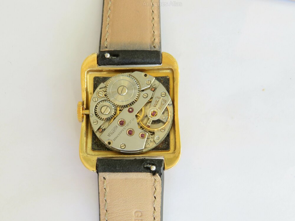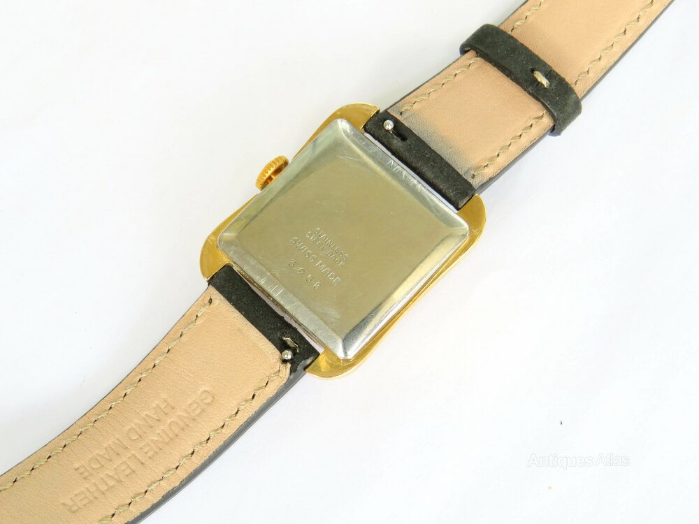 The watch measures 28mm wide excluding the winding crown, and 26mm high excluding the lugs. The case is gold plated while the case back is stainless steel. It is in lovely condition, as is the convex lens (some reflection showing in the photos).
