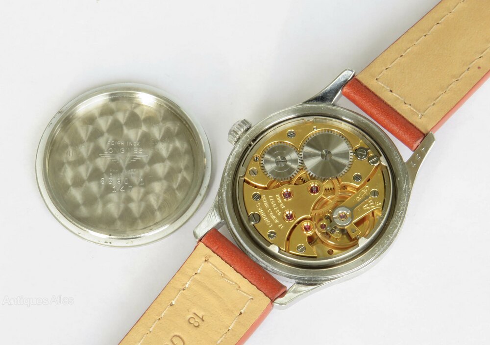 The watch measures 34.5mm diameter excluding the winding crown and the lugs. The case is stainless steel and it is in good condition with just general light surface marking, nothing too serious at all. The screw-on case back is signed with the Longines name on both the inside and outside, and it also has a past owner’s name. The case back also states that the watch is waterproof but, as with any vintage watch, it should be kept away from water and moisture.