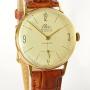 The watch measures 31mm diameter excluding the winding crown and the lugs… originally designed as a man’s watch, it would suit a slimmer wrist. The case is gold plated and it is in good condition. The case back is stainless steel.