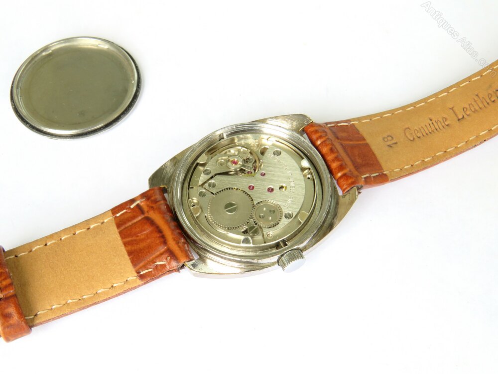 The watch measures 33mm wide excluding the winding crown and 33.5mm high excluding the lugs. The case is chromium plated while the screw-on case back is stainless steel. There is a little rubbing to the plate on the tips of the lugs, and general light surface marking, but overall very acceptable.