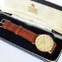 The watch measures 33mm diameter excluding the winding crown and the lugs. The case is gold plated and the case back is stainless steel. The case is in good condition, just the odd minor mark but nothing serious at all. The case back has a long service inscription from Leyland Jaguar.