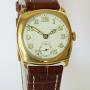 The watch measures 30mm wide excluding the later winding crown, and 30mm high excluding the lugs. Although originally designed as a man’s watch, it would suit a slimmer wrist. The case is 9 carat gold and there are hallmarks inside the case back for Chester 1943, together with the case maker’s name of Stolkace and the initials GAS for George Arnold Stoll of the Elite Bracelet Manufacturing Co Ltd who registered the Stolkace name in 1934. The case is in good condition for such an early piece, a small “ding” to the edge of the lug, and a little unevenness to the back but not too serious at all.