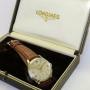The watch measures 33.5mm diameter excluding the winding crown and the lugs. The case is stainless steel and it is in very nice condition, just a fairly light scratch across the back of the watch. The inside of the case back is signed with the Longines logo, as is the winding crown.