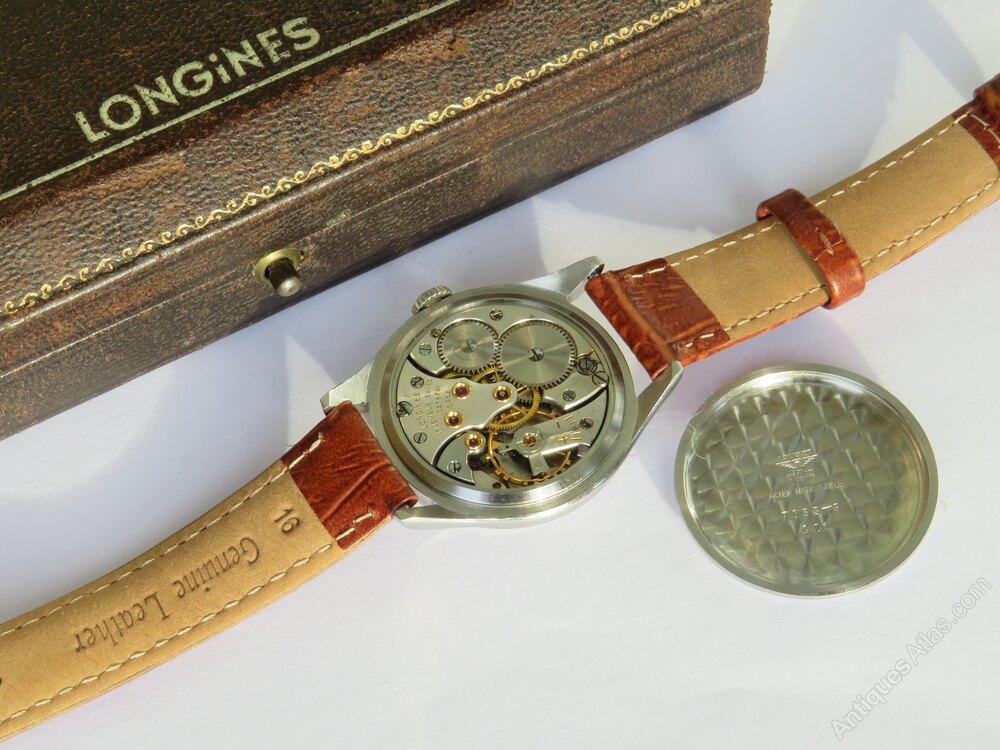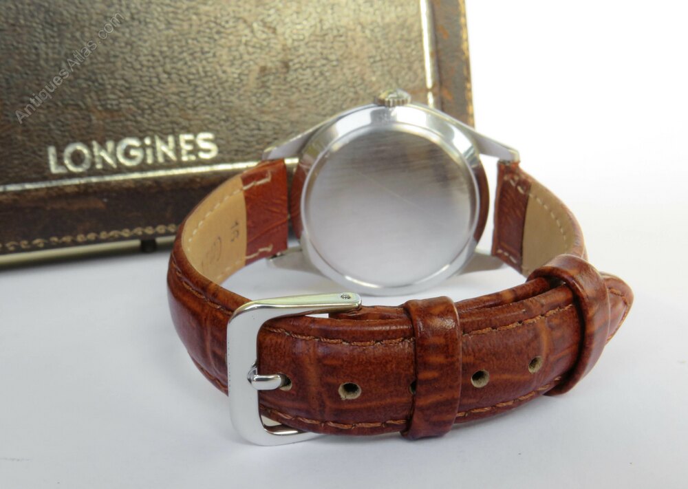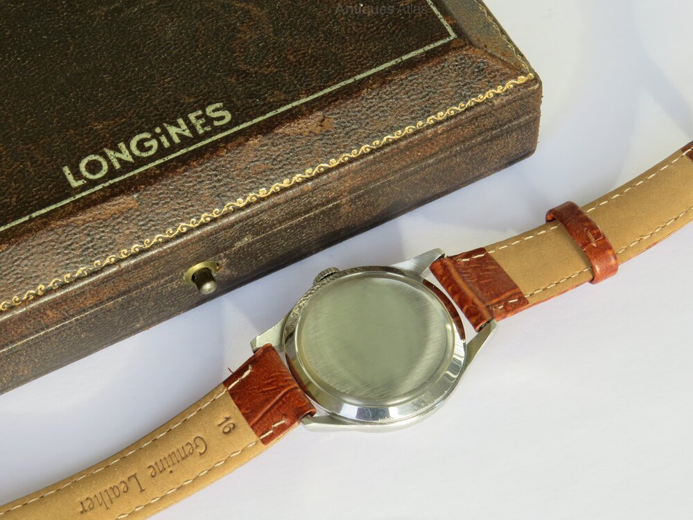 The watch has a 17-jewel 12.68Z hand-winding movement which is working nicely. The movement is signed with the Longines name, and it has the serial number 10,374,761 which dates it back to 1957.