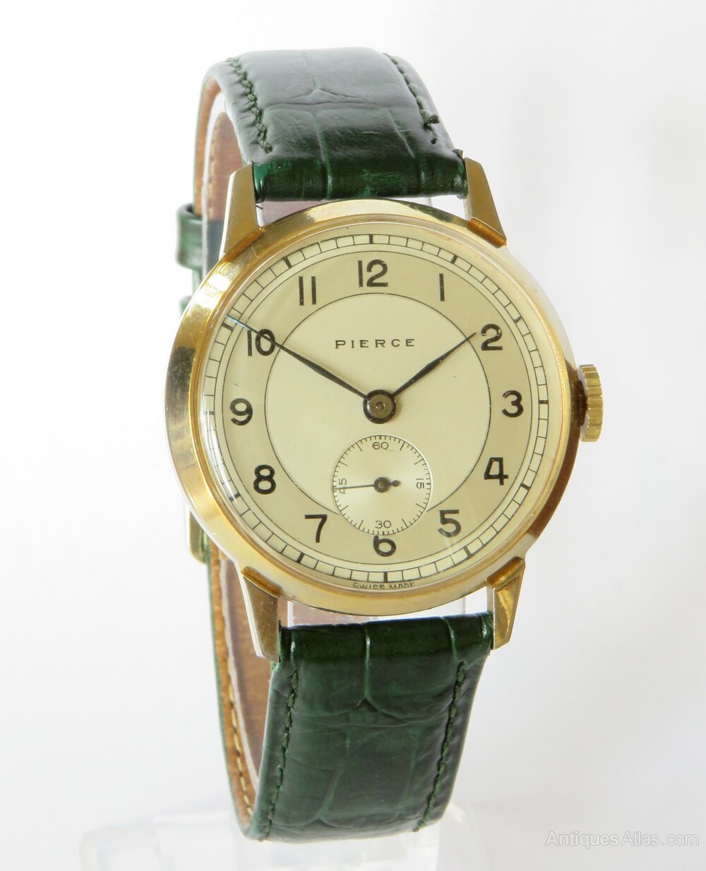 The watch has a Swiss 15-jewel hand-winding movement which is working nicely. The movement is signed Pierce Watch Co Inc.