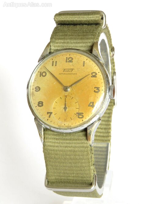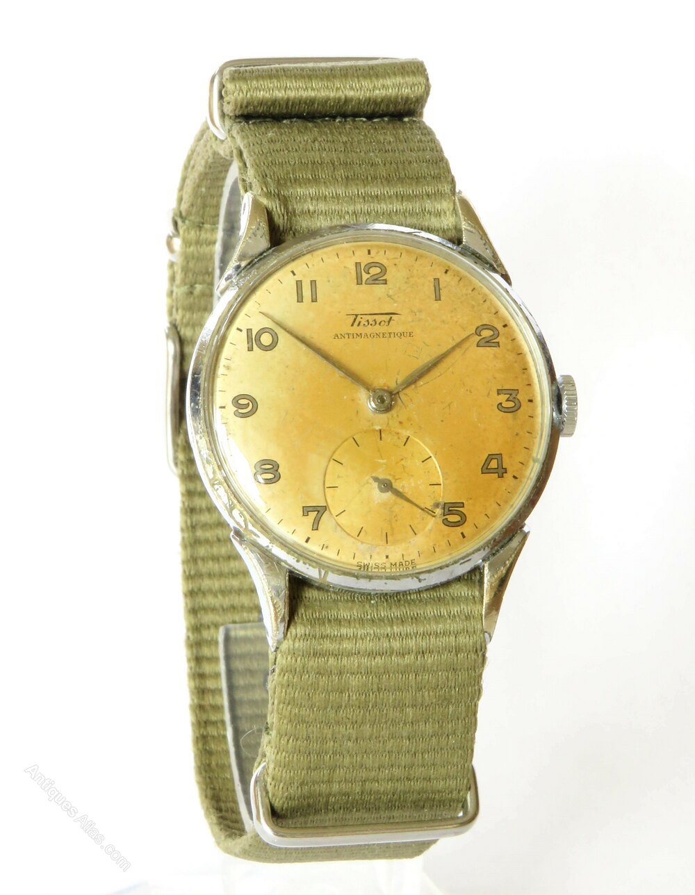 The watch measures 33mm diameter excluding the winding crown and the lugs. The case is chromium plated while the case back is stainless steel. There is some marking to the plate, commensurate with the age of the watch. The case back is signed inside with the Tissot logo.