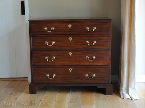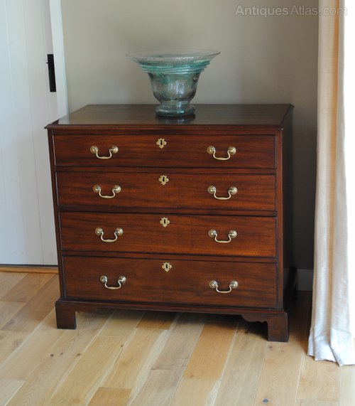 Georgian (George III) mahogany Chest of Drawers. Dating from 1780, this Chest of Drawers has a lovely colour and patina. With 4 graduating drawers (all oak-lined), each with swan handles it has been sensitively restored to make a lovely piece of antique furniture.