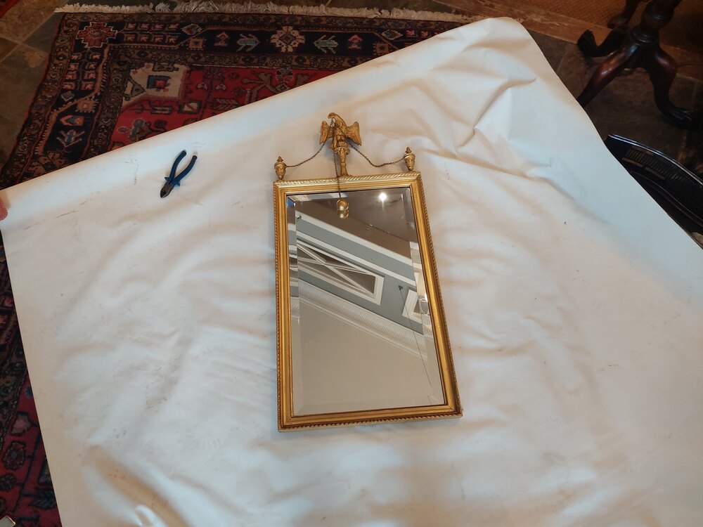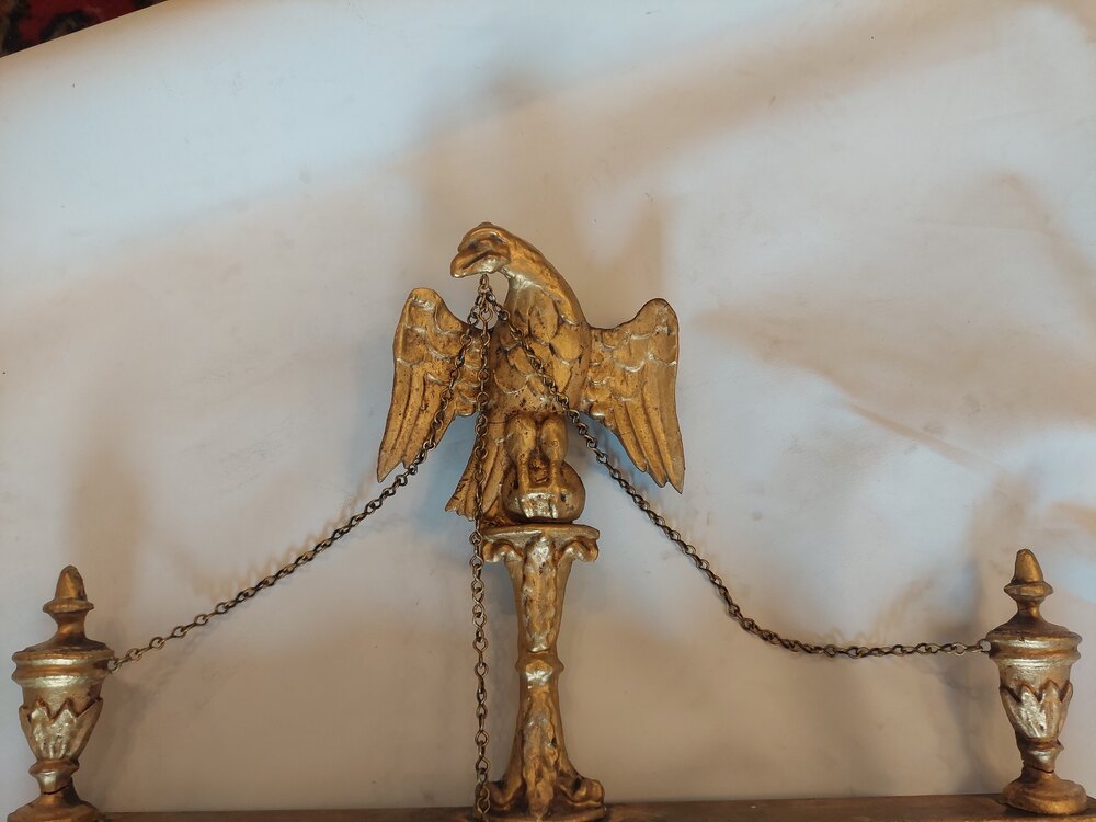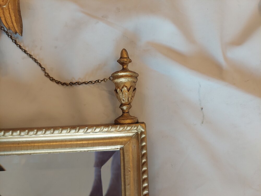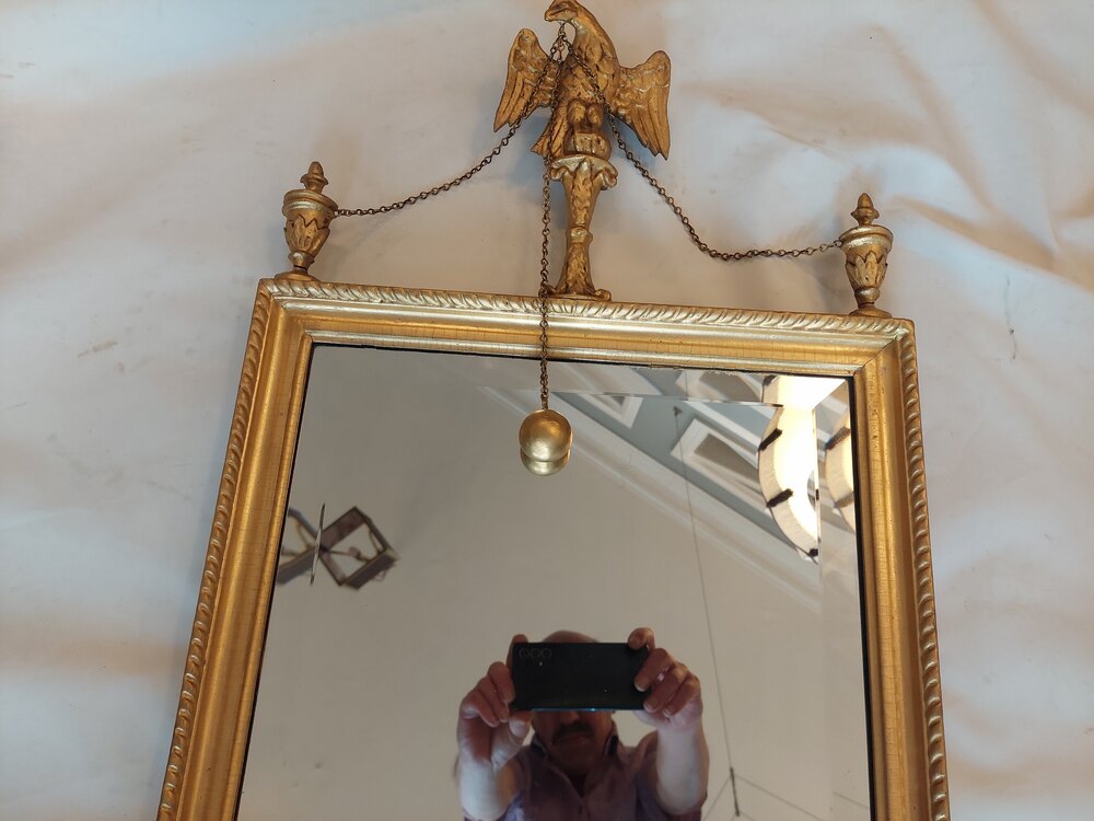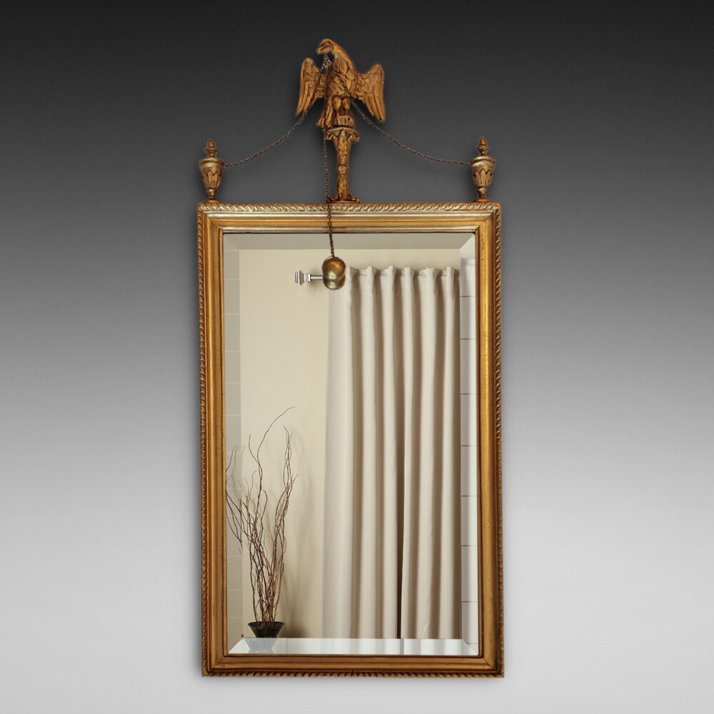 George III Gilt Pier Mirror - with rectangular bevelled plate, with urn and eagle surmount, hung with ball and chain and gadrooned frame - 16"w x 35"h