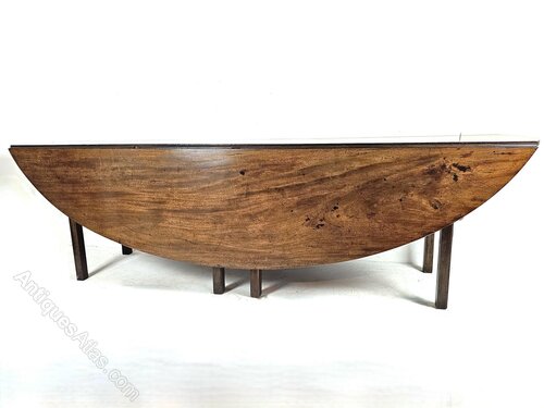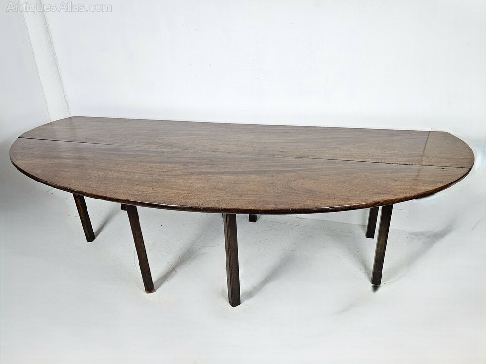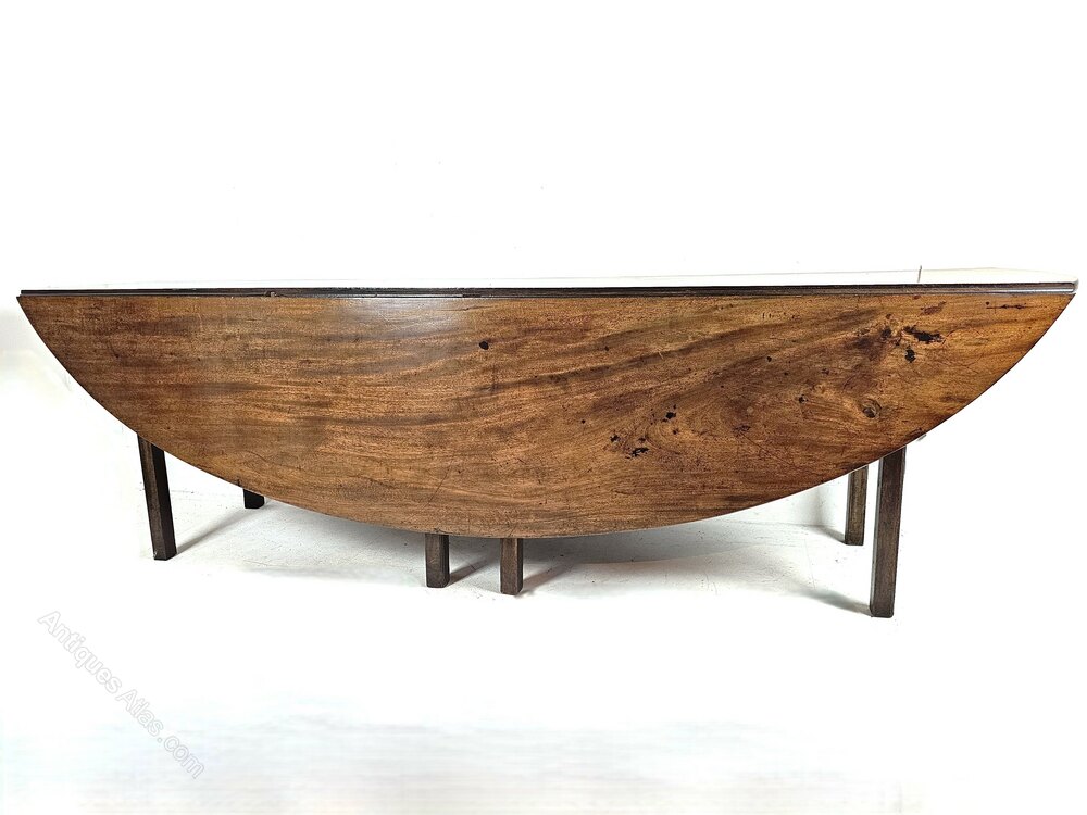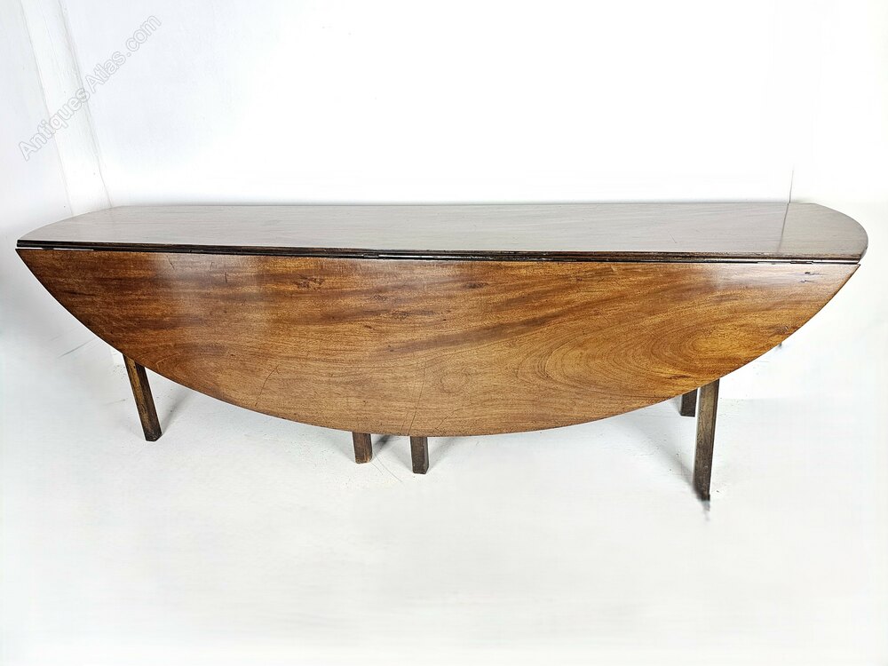 Original oiled and wax mahogany top with two oval drop leaves, double gate-leg on 8 square moulded legs with thumbnail edged detail, amazing colour, patina and being one of very few wake tables of this size (258 cm - 101.5"). Original condition, having a number of historical repairs to the legs/undercarriage as appropriate to age (see photos). Seats 12.