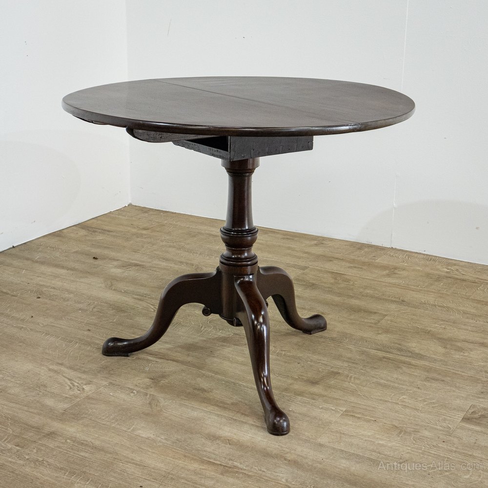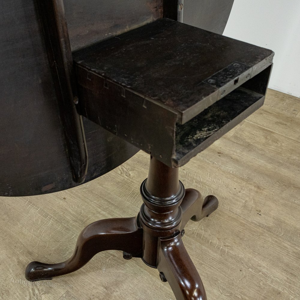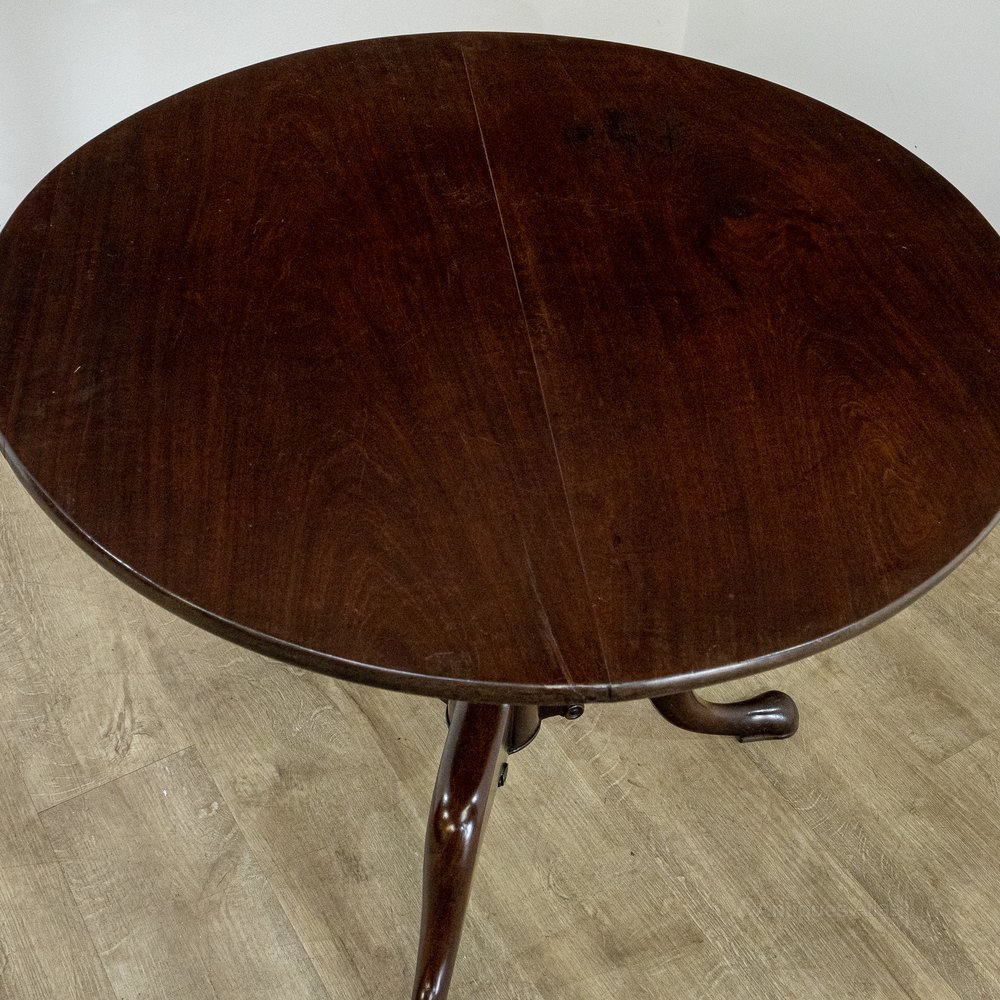 George III mahogany tilt top tripod table. Features an original early ‘Birdcage’ locking mechanism and smooth polished finish highlighting the smart, deep red-brown colour. Some previous restoration to the table top with a sturdy Georgian tripod base.