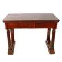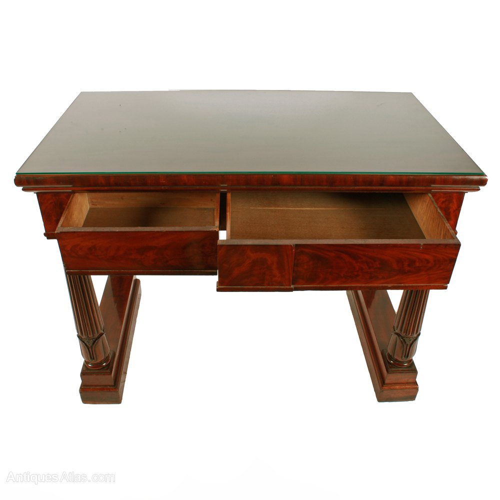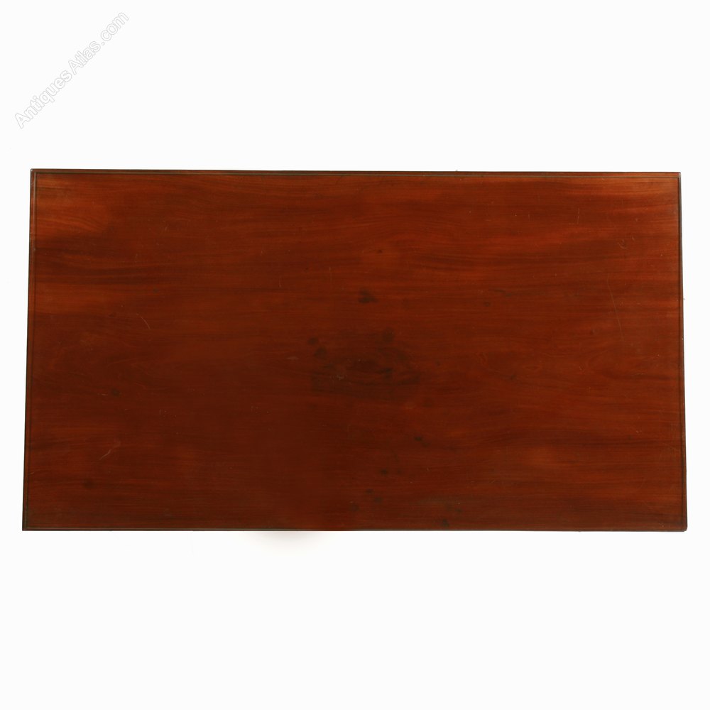 The table has two disguised mahogany lined drawers to the front that are flame mahogany veneered, one two thirds width the other one third width.