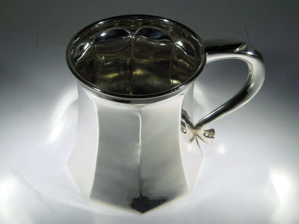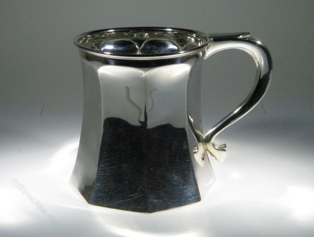 George V octagonal silver Christening tankard