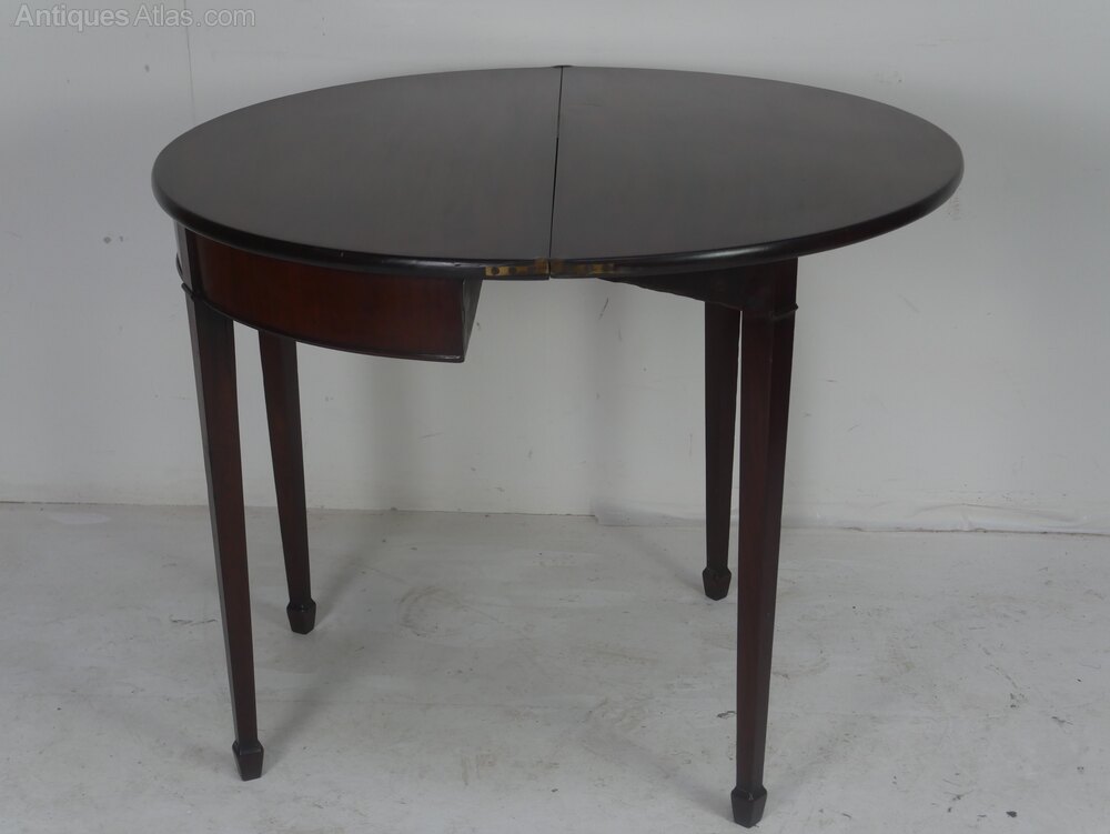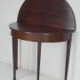 A well made half moon shaped mahogany side table, standing on square tapered legs. The table opens to a round table, all in good strong condition, minor historic treated woodworm to the stretcher (see photo), made around 1800, one mark to the top, all ready for use.