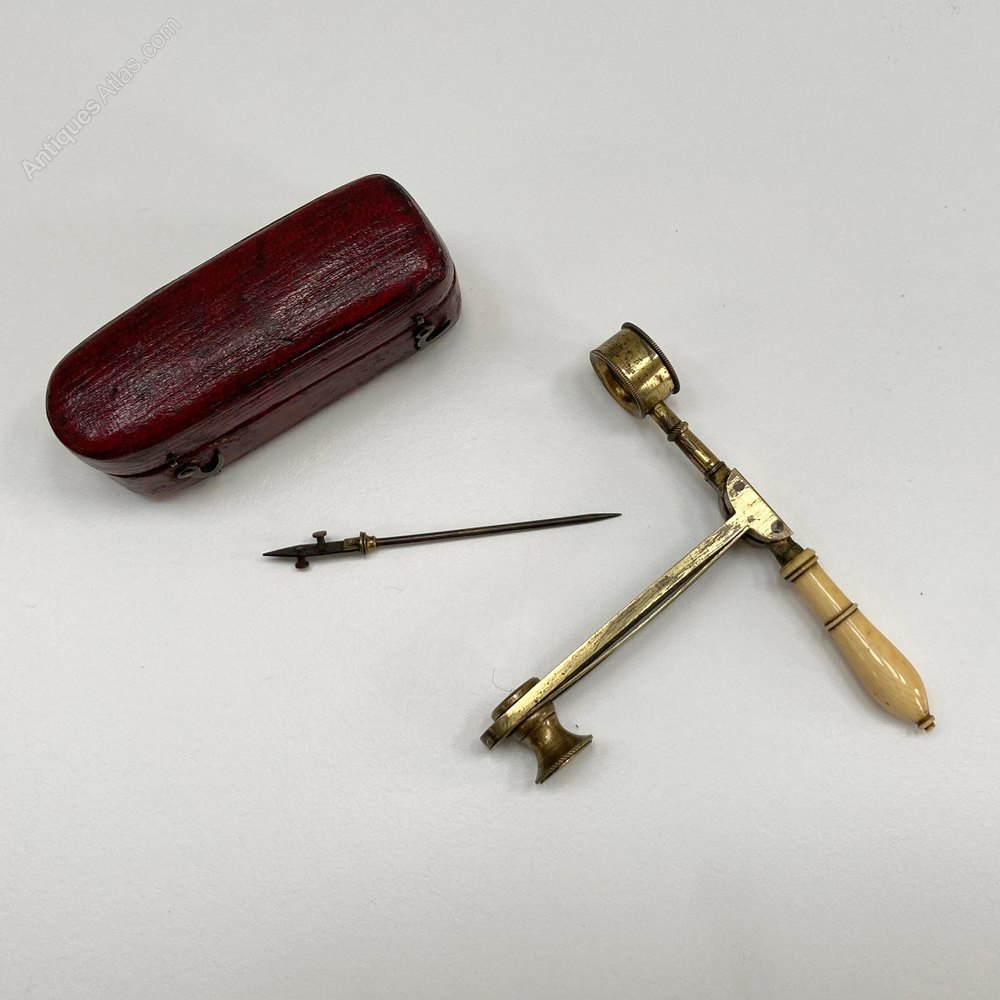 Often called a fleaglass or pocket botanical microscope, these examples were produced from the Late Eighteenth Century by the likes of George Adams and were famously produced by the maker’s W&S Jones (thus the name). Like most examples, this one is unsigned but is of super quality with knurled brass edges and beautifully turned handle.