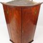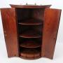 A handsome antique George III mahogany bow fronted corner hanging cupboard dating from circa 1800. Having a moulded cornice above two doors, which open to reveal storage inside the interior fitted with three shelves and three spice drawers. The doors have ‘H’ brass hinges and an attractive escutcheon. A wonderful deep colour with beautiful figuring and patina.