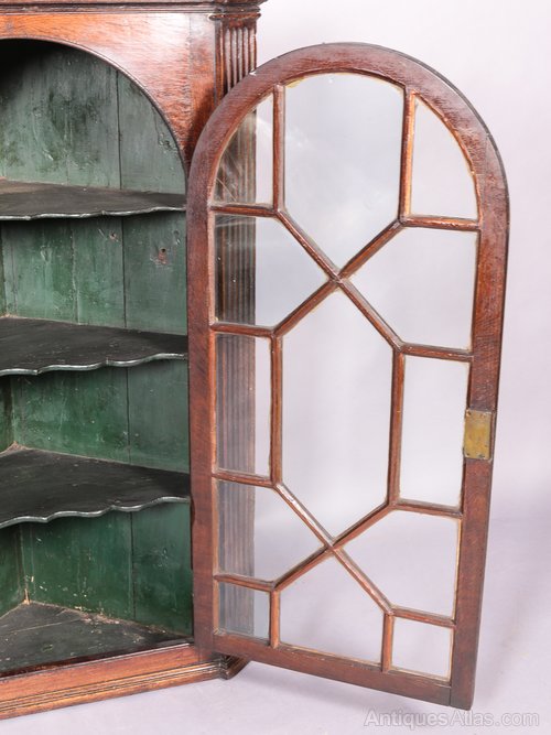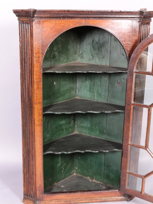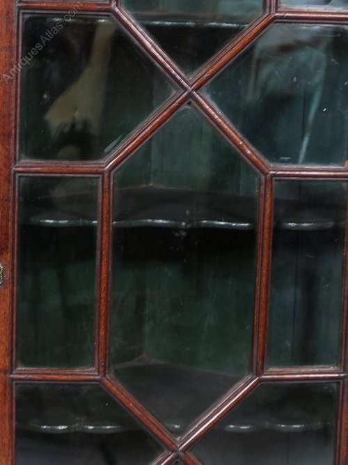 An Attractive 18th century corner cupboard in Mahogany it has 13 pane astragal glazing to the door and all the glass is original, it also has very attractive probably original green paint to the interior, the condition is excellent with just one small crack to the top right hand pane.