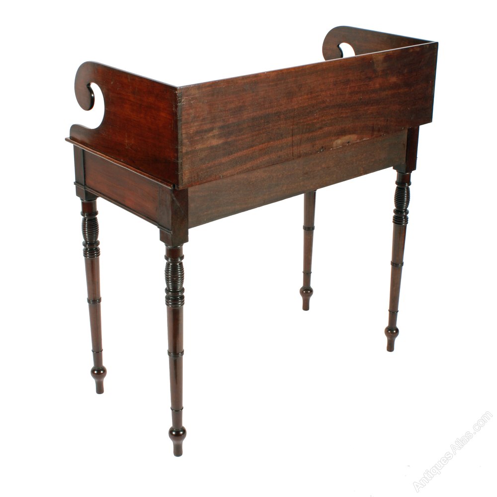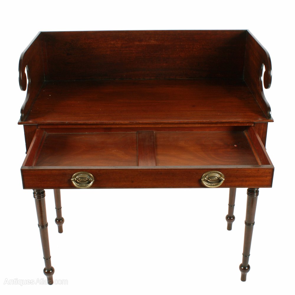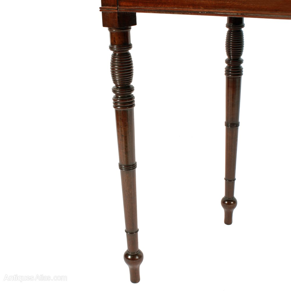 The long slim drawer is lined with solid mahogany, the drawer fronts have a cock bead edge and brass plate handles.