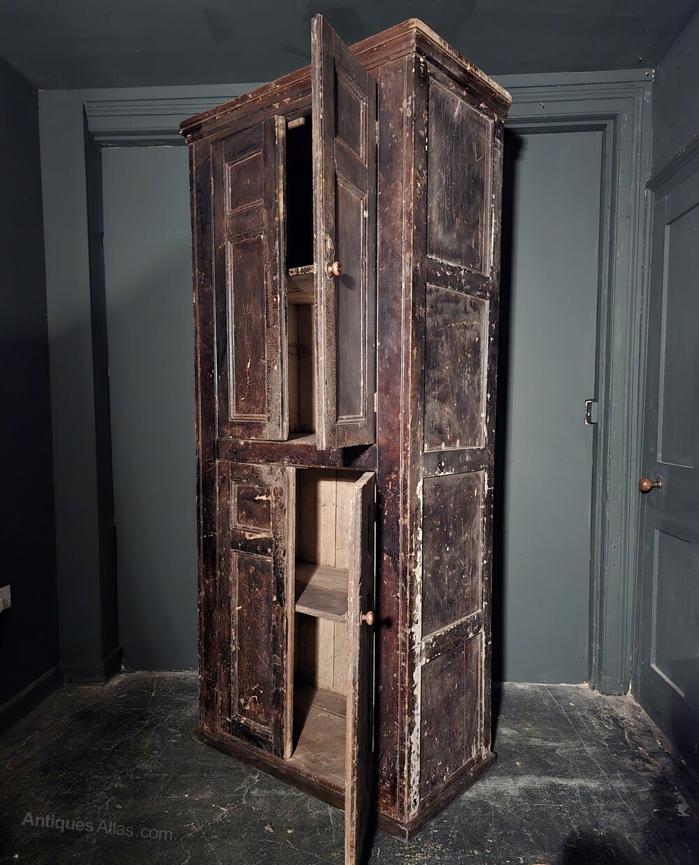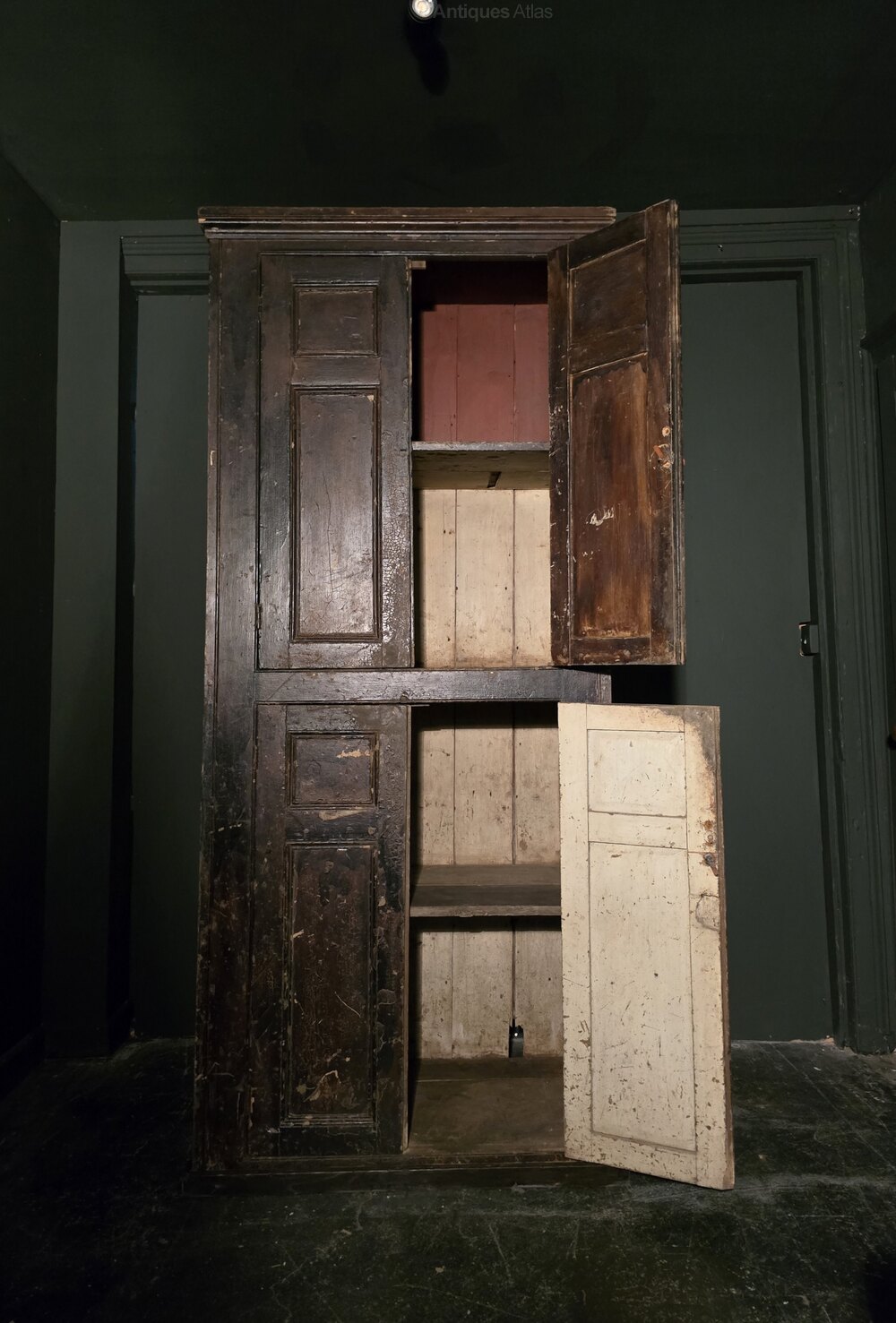 Georgian Pine Housekeepers Cupboard, with the remains of the original paint. The cupboard is a lovely small size.