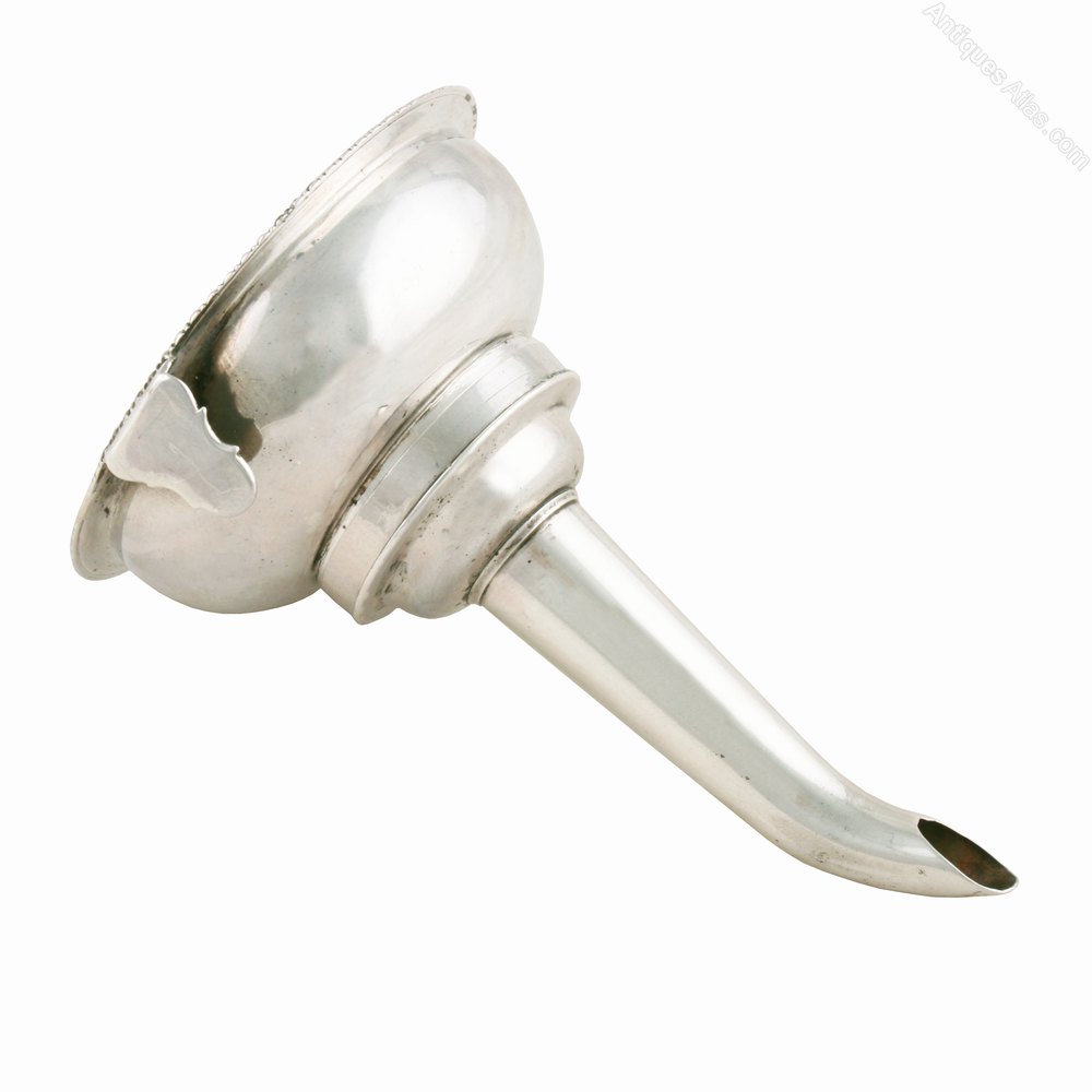 The funnel has rubbed hall marks for London, the year 1759 and the maker's mark for Benjamin Bickerton.