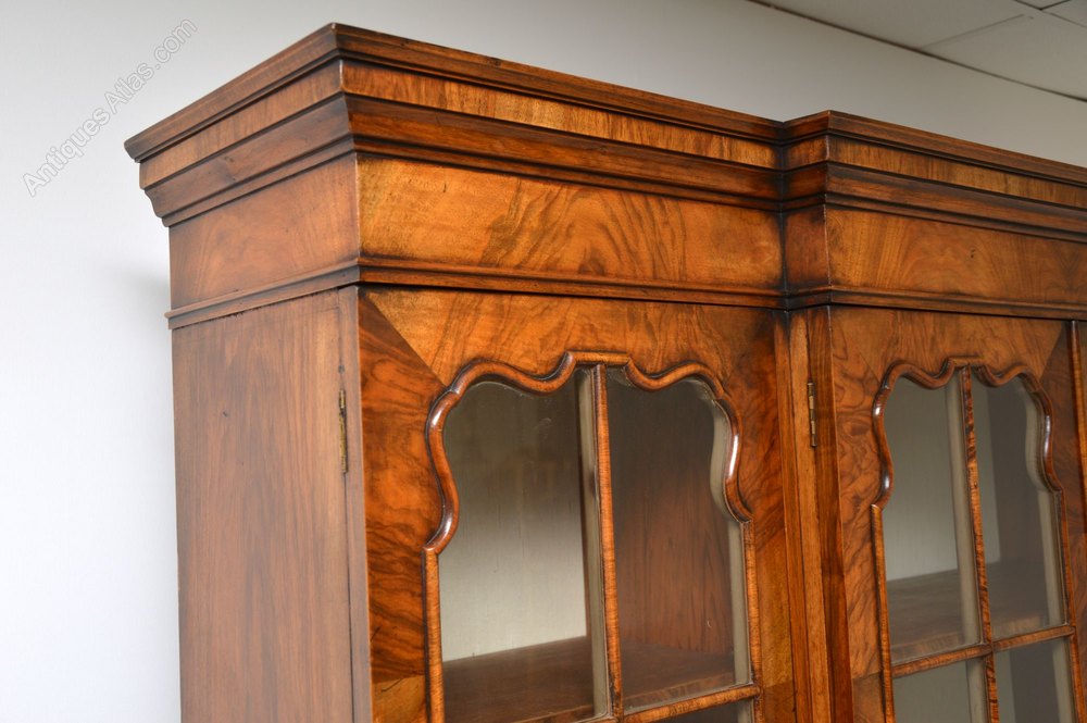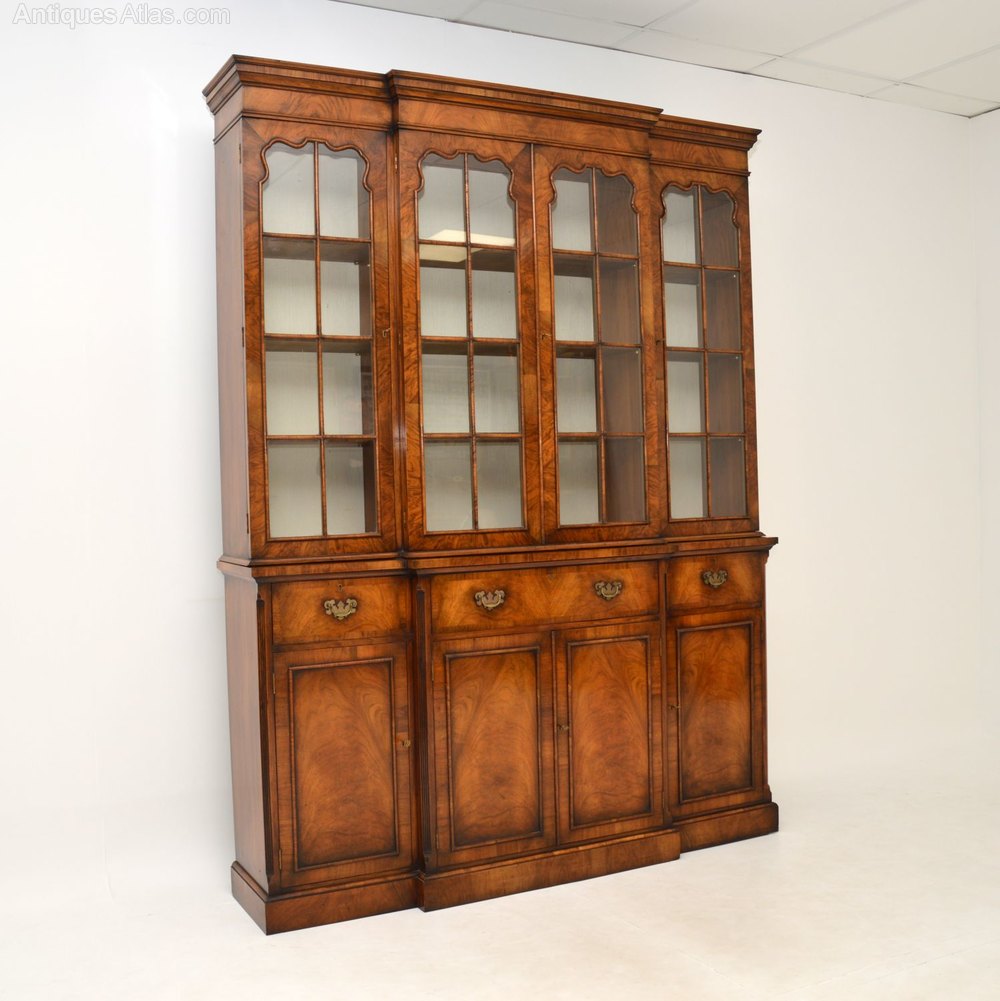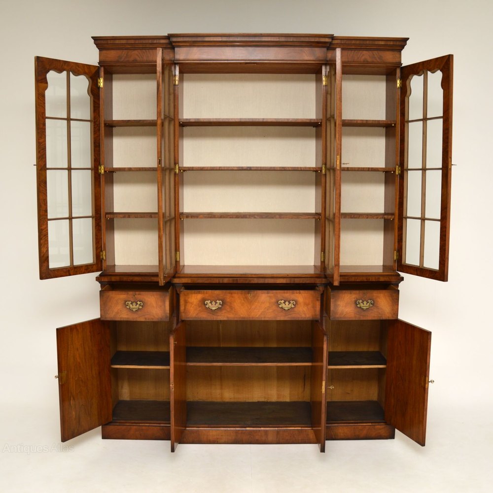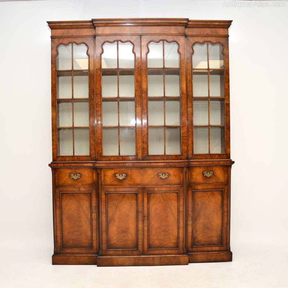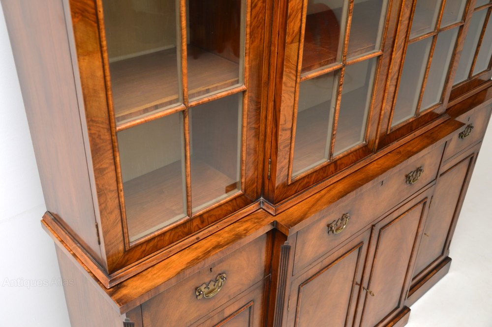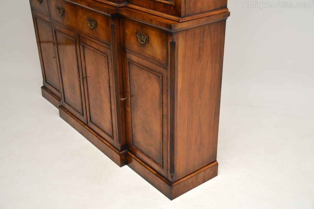 A large and very impressive walnut breakfront bookcase, in the antique Georgian style. This dates from around the 1950-60’s period.