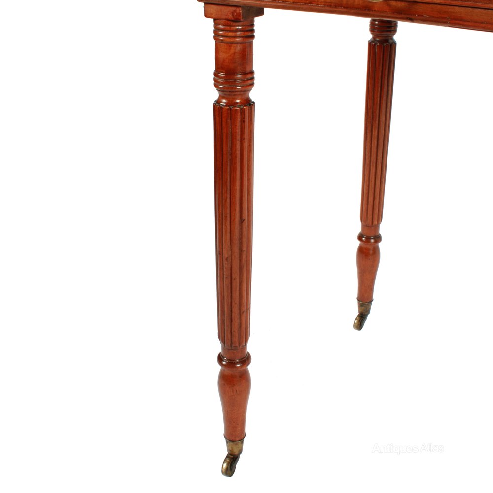 The legs are turned and reeded and have brass casters.