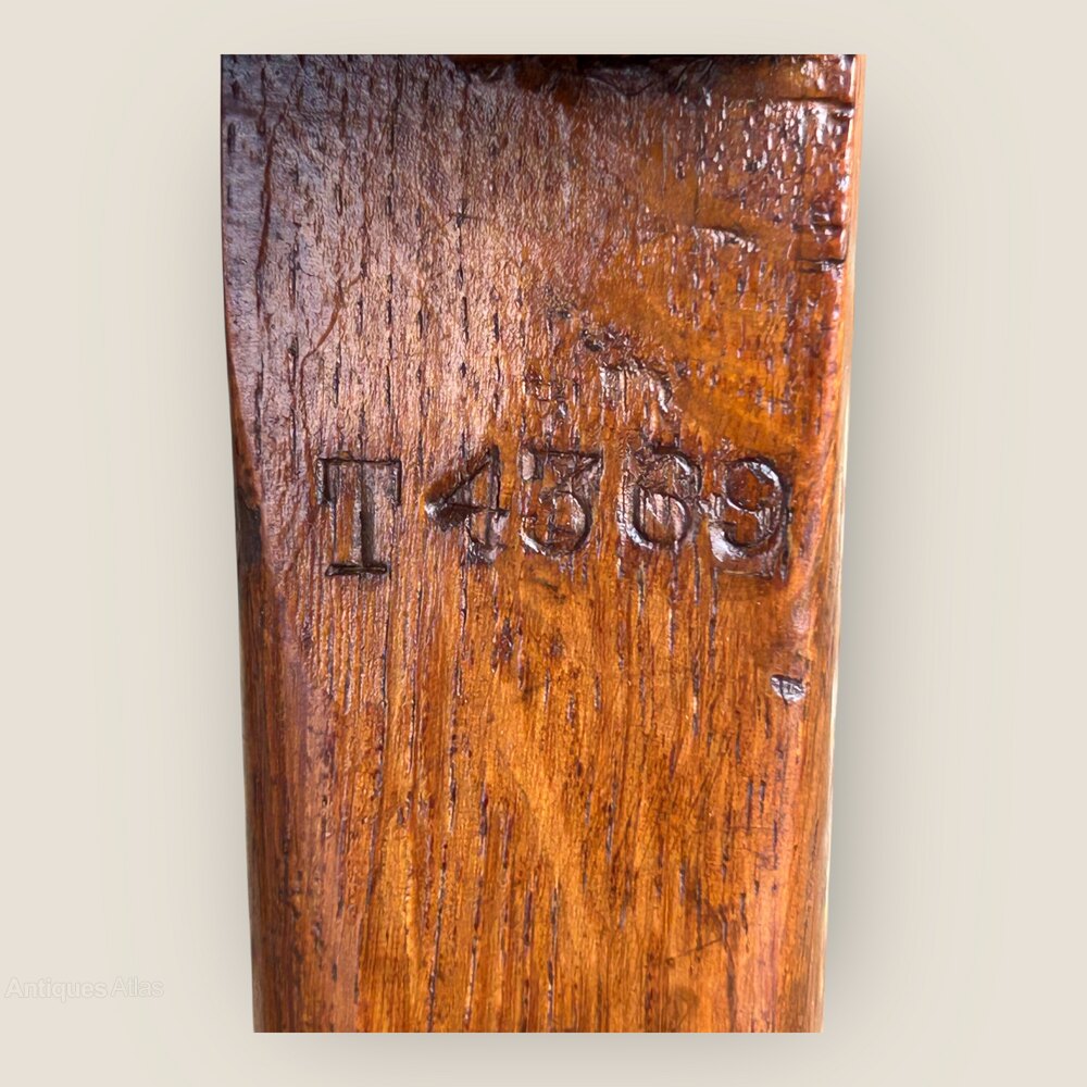 Stamped “T 4369”, the coding system was a traditional stamp by Gillows on most pieces of furniture from 1870s onwards. The “T” is unique, most Gillows pieces, traditionally have a "L", for Lancashire or London, before the stock numbers, but there have been a rare few pieces made by Gillows with different letters for example chairs with “C” to start with. These pieces with original letting are believed to either be by specific workshops, cabinet makers or designers within the firm. Not only does the design attribute to Bruce James Talbert work, but we believe the T, for Talbert, signifies a piece made or designed by him.