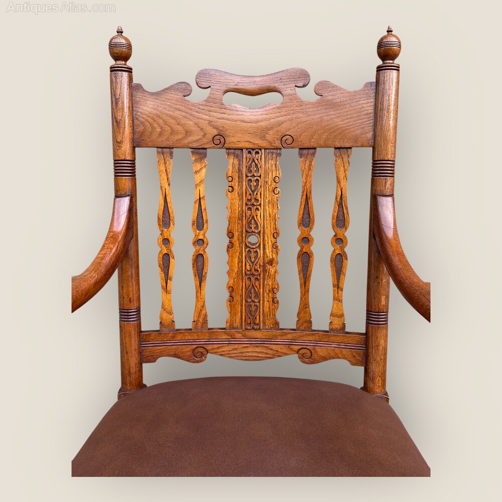 Victorian Oak Gothic Revival Style Oak Hall Chair