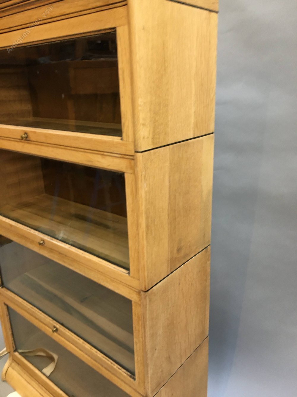 Early C20th pale oak of 4 large sections each of which "flat-packs" as is the construction of Gunn bookcases.