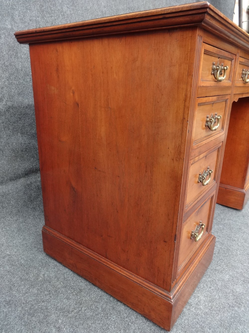 Antique Burr Walnut Leather Top Desk