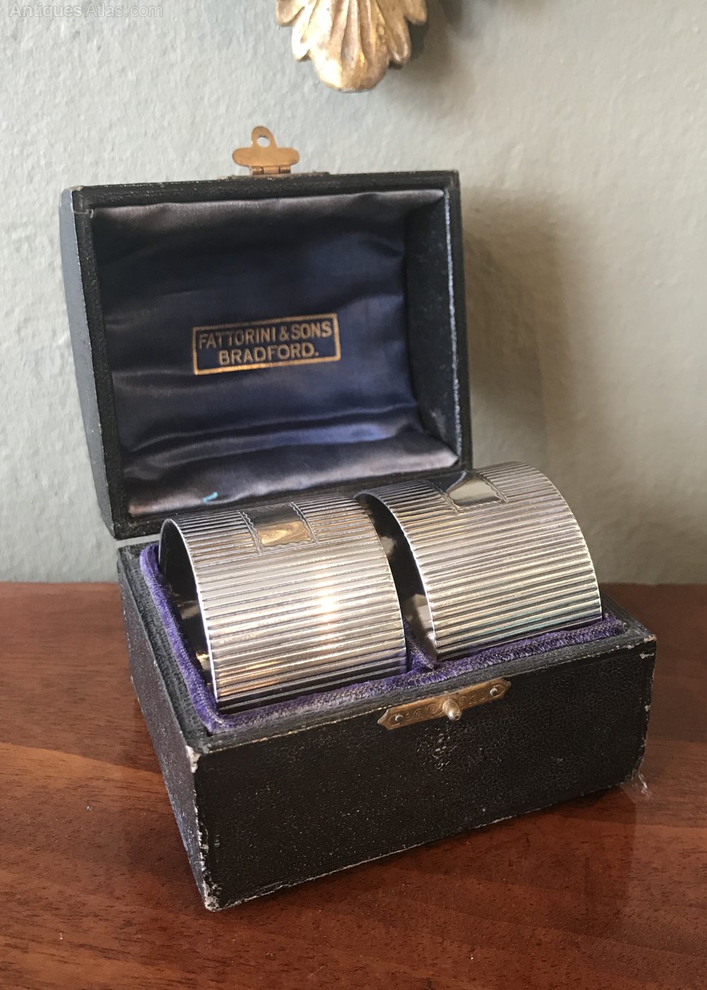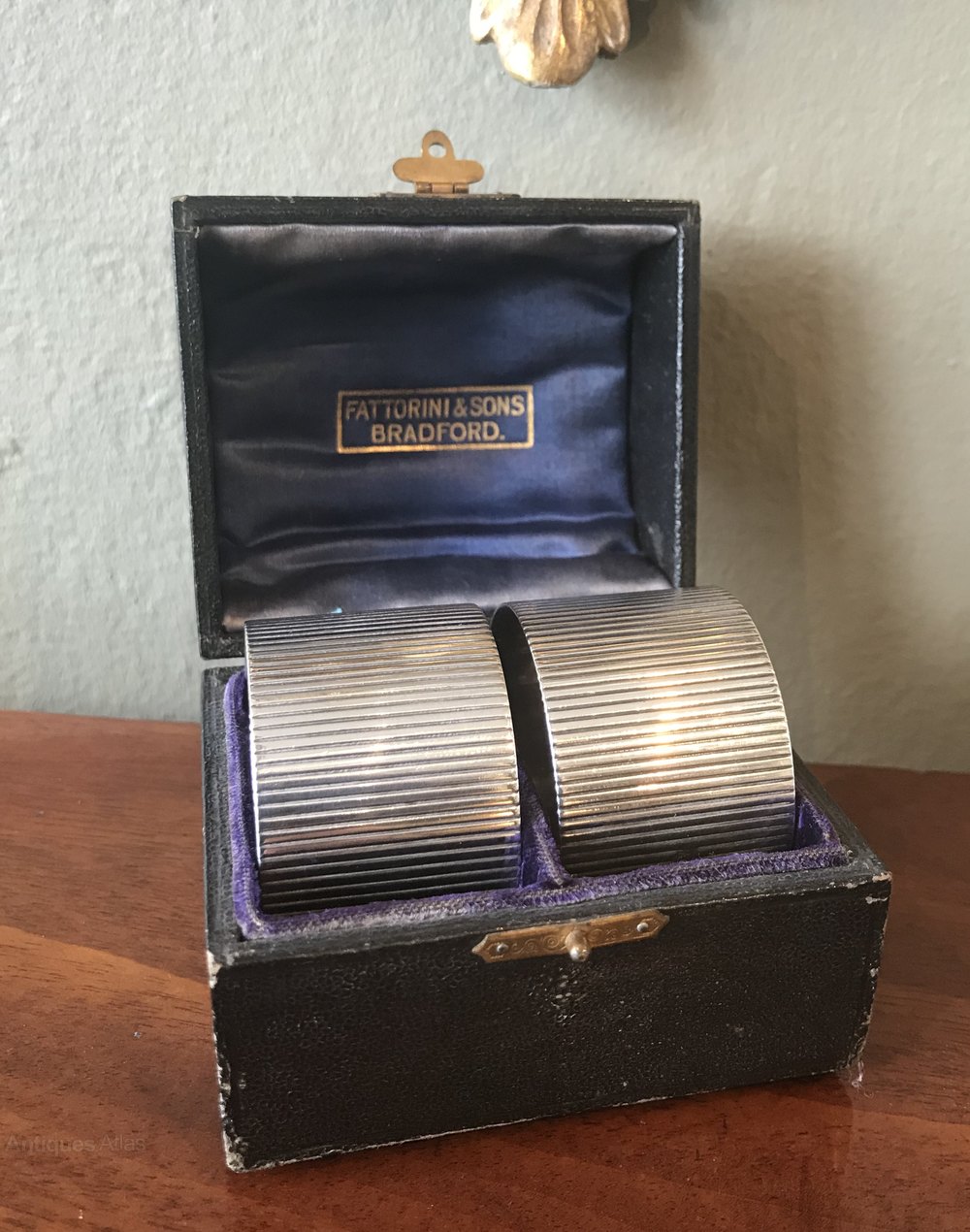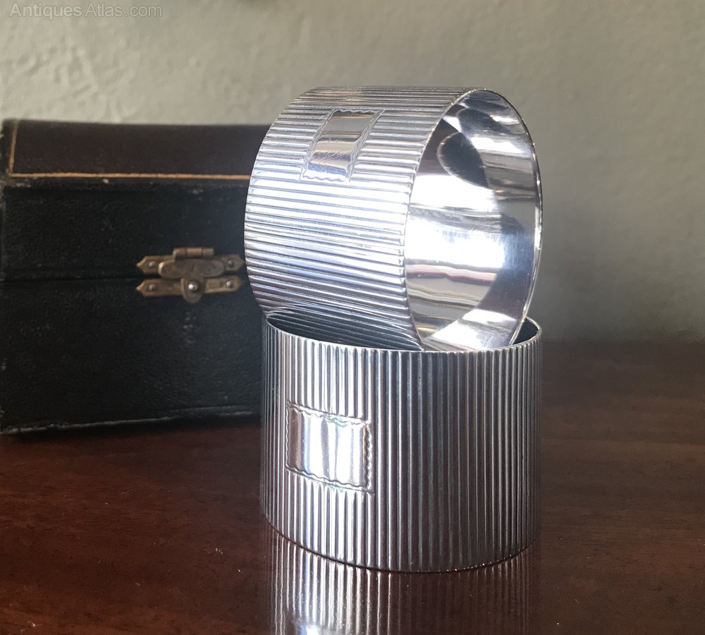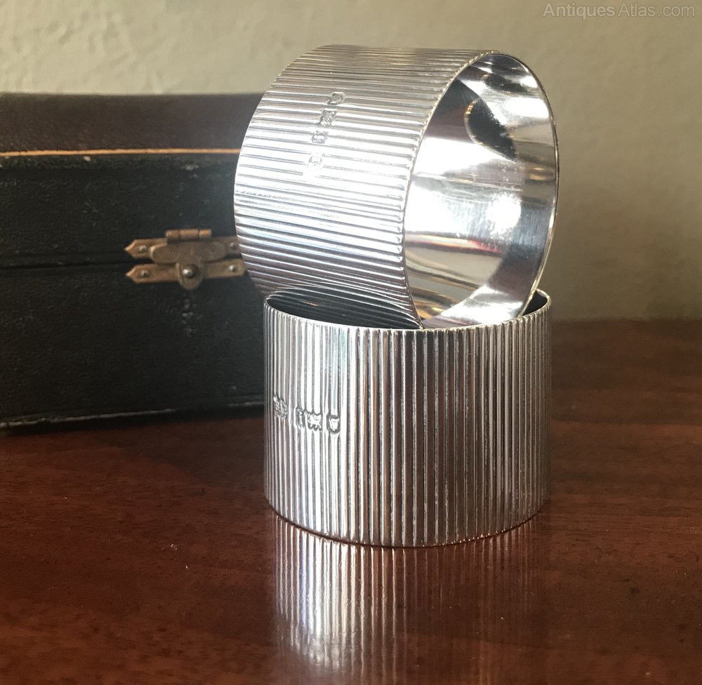 A very good and weighty pair of Edwardian solid silver napkin rings by Frederick Augustus Burridge, hallmarked London 1904. A very good weight of 65 grams. Stylish reeded body with central vacant cartouche. In excellent condition throughout and presented in original fitted case.