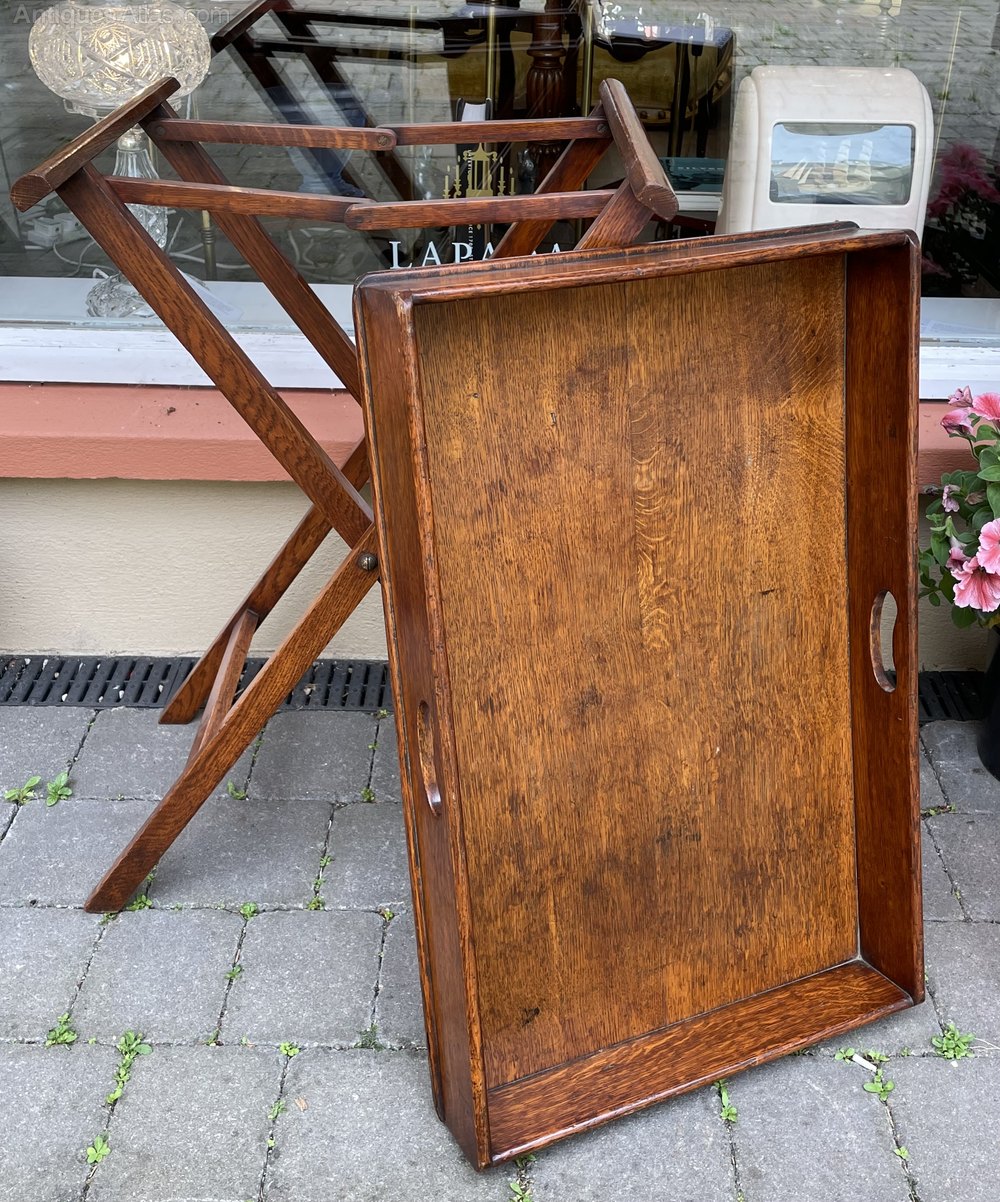 Good Victorian Oak Butlers Tray On Stand