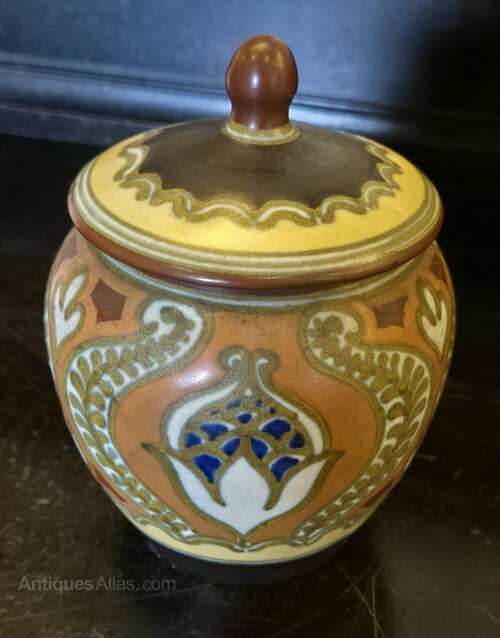Excellent Gouda Lidded Jar in the Plato pattern