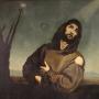 The composition and theatrical lighting recall Iberian devotional painting, reinterpreted in the 19th century. This evocative and highly decorative painting is suitable for refined, classic and modern settings. The 20th-century frame is carved and gilded wood, with some signs of aging. The painting has undergone restoration, including relining, replacement of the stretcher, and restoration of the color in some areas.